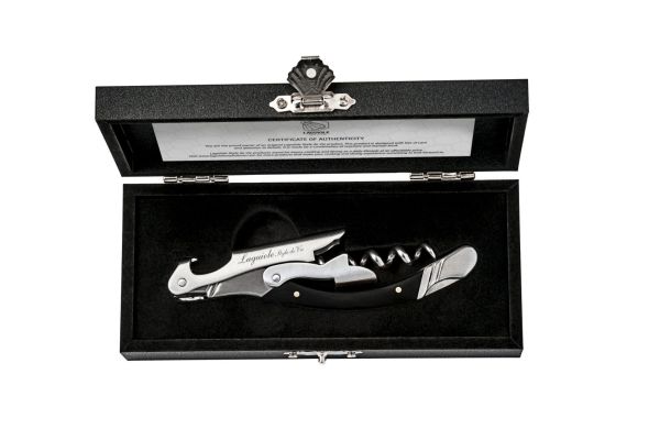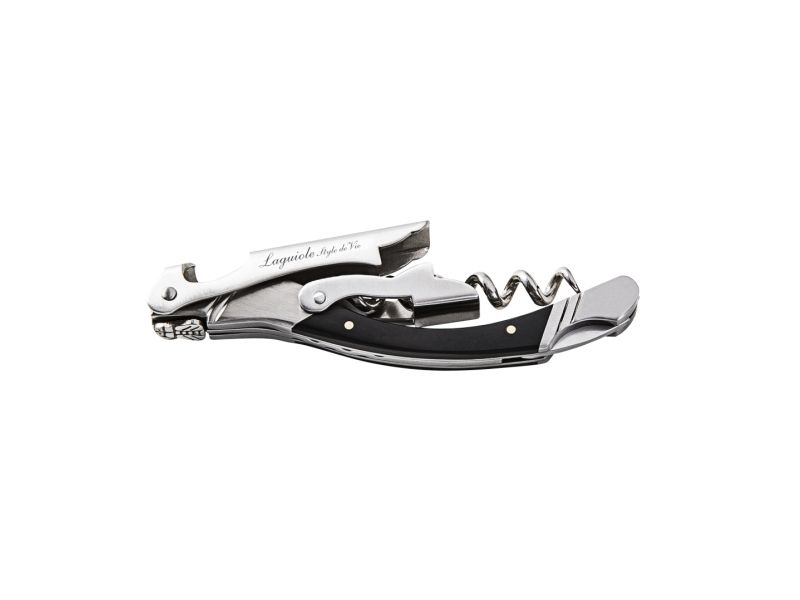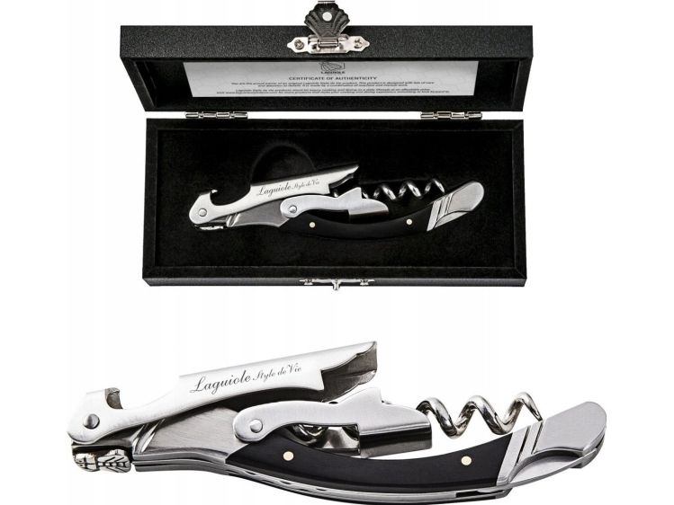 Åbn en vinflaske med denne højkvalitets sorte ibenholt-proptrækker fra Laguiole Style de Vies luksusserie. Denne proptrækker er lavet af hærdet stål og kan tåle hårdt arbejde. Leveres i et luksuriøst sort etui, så du altid kan opbevare den korrekt. Imponer dine gæster med denne unikke proptrækker. På grund af træfinishen tåler proptrækkeren ikke opvaskemaskine.