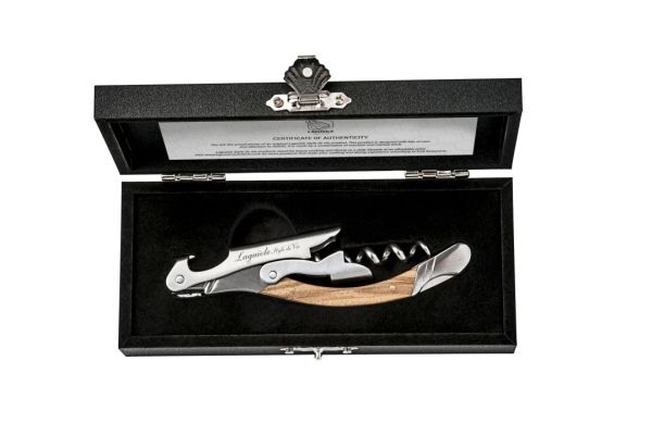 Åbn en vinflaske med denne højkvalitets proptrækker fra Laguiole Style de Vies luksuslinje. Denne proptrækker er lavet af hærdet stål og kan tåle hårdt arbejde. Leveres i et luksuriøst sort etui, så du altid kan opbevare den korrekt. Imponer dine gæster med denne unikke proptrækker. På grund af træfinishen tåler proptrækkeren ikke opvaskemaskine.