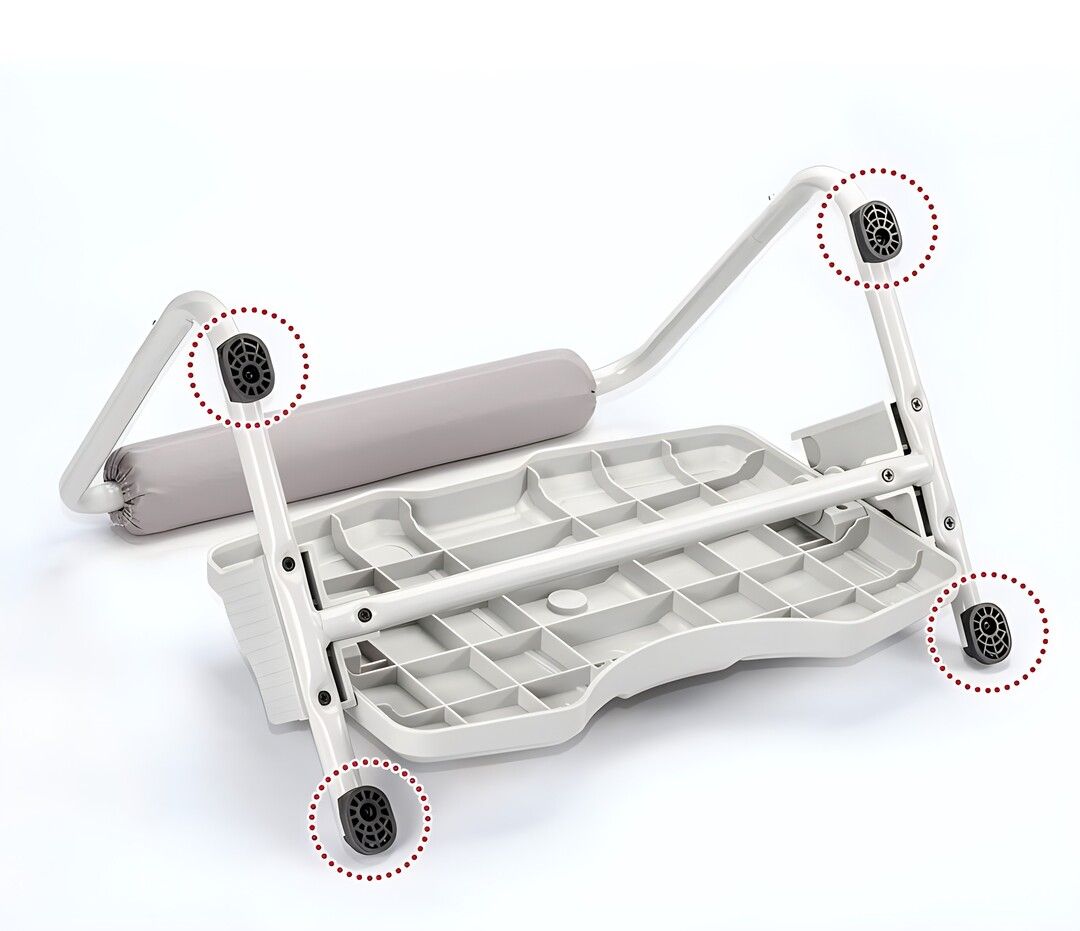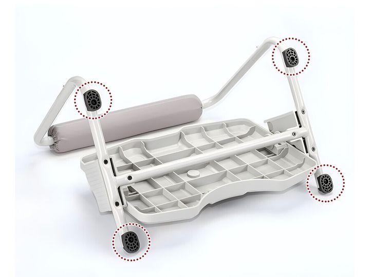 Robust kraftbelagt stålrørskonstruktion.4 skridsikre gummifødder forhindrer glidning og gør konstruktionen meget stabil.