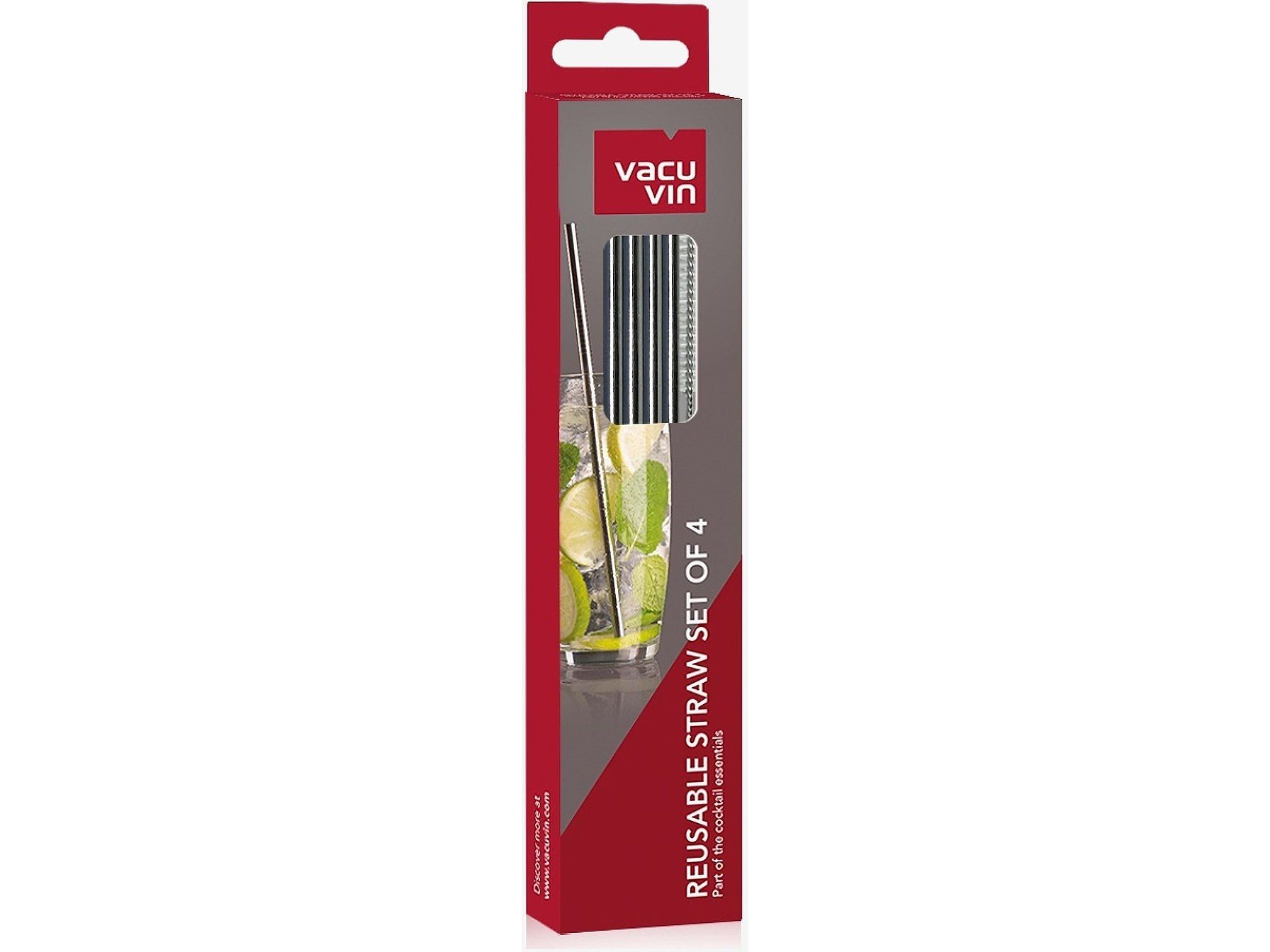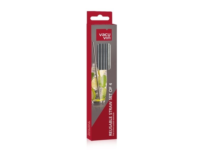 Njut av miljövänlig smuttning med en uppsättning med 4 återanvändbara sugrör och 1 rengöringsborste.