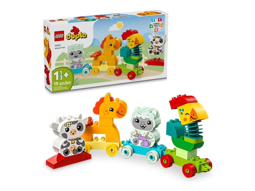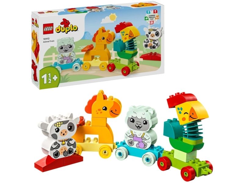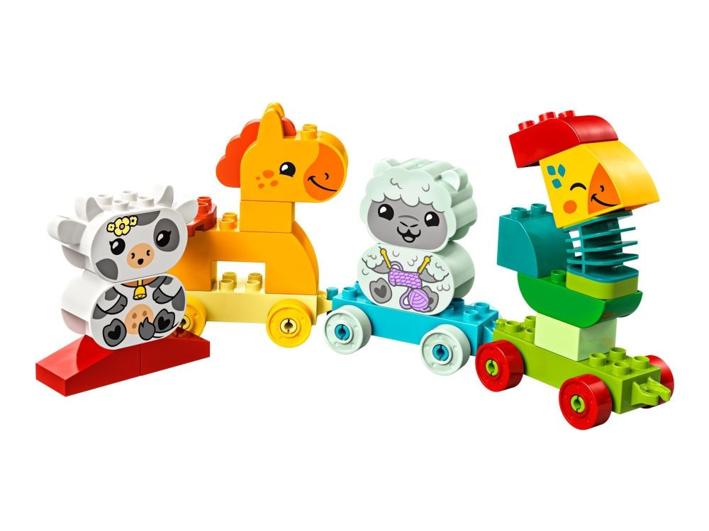 1. Kjøretøy med dyr – LEGO® DUPLO® Mitt første dyretog for barn fra 18 måneder inkluderer fire byggbare dyr og tre togvogner som kan settes sammen for kreativ rollelek