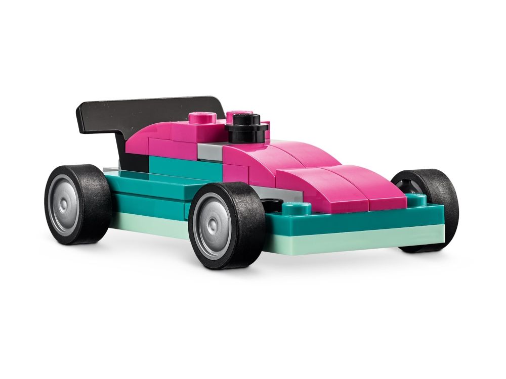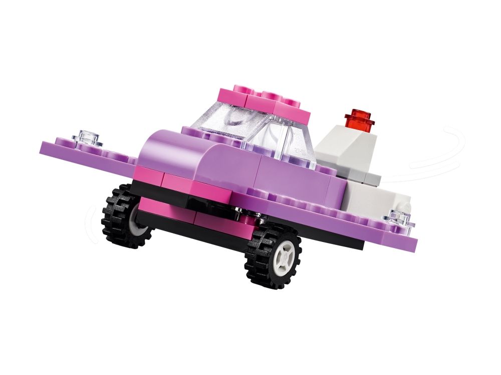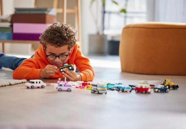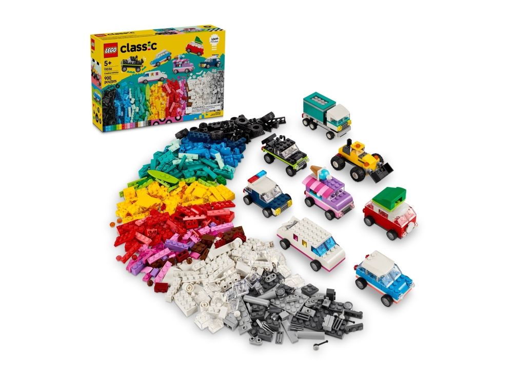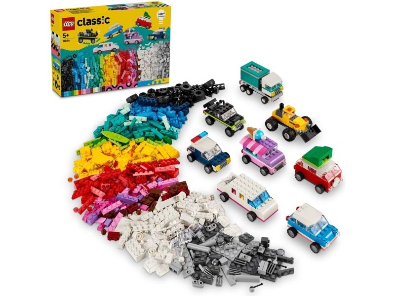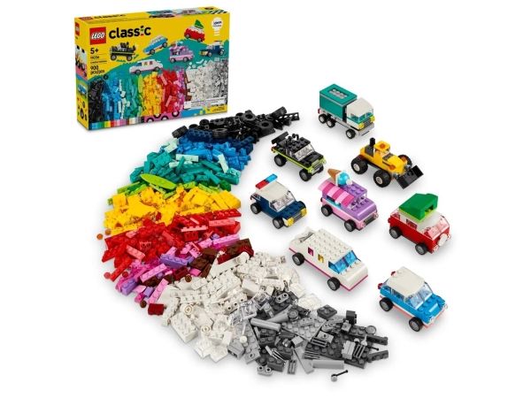 Med 900 byggeklosser, spesielle deler og 52 hjul samt enkle instruksjoner kan barn bygge en politibil, en isbil, en ATV, en frontlaster, en lastebil, en stasjonsvogn, et terrengkjøretøy og en limousin til lek. Deretter får barnet inspirasjon til forskjellige designer, kule detaljer og fargerike dekorasjoner for å bygge om kjøretøyene på nye, gøyale måter. Når barna utvikler mer kreative byggeferdigheter, kan de prøve ut sine egne designer. Det følger med ti fantasifulle ideer som kickstarter den kreative moroa. De finner også instruksjoner i LEGO Builder appen, som lar barna zoome inn, rotere modellene og spore fremgangen sin.
