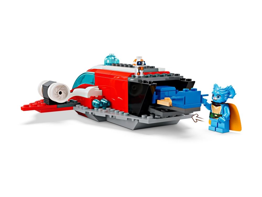 3. Enkel å bygge – The Crimson Firehawk kommer med en startklossbase som gjør det enkelt å bygge og en cockpit med plass til alle de tre figurene, dessuten får speedersykkelen plass bak i stjerneskipet