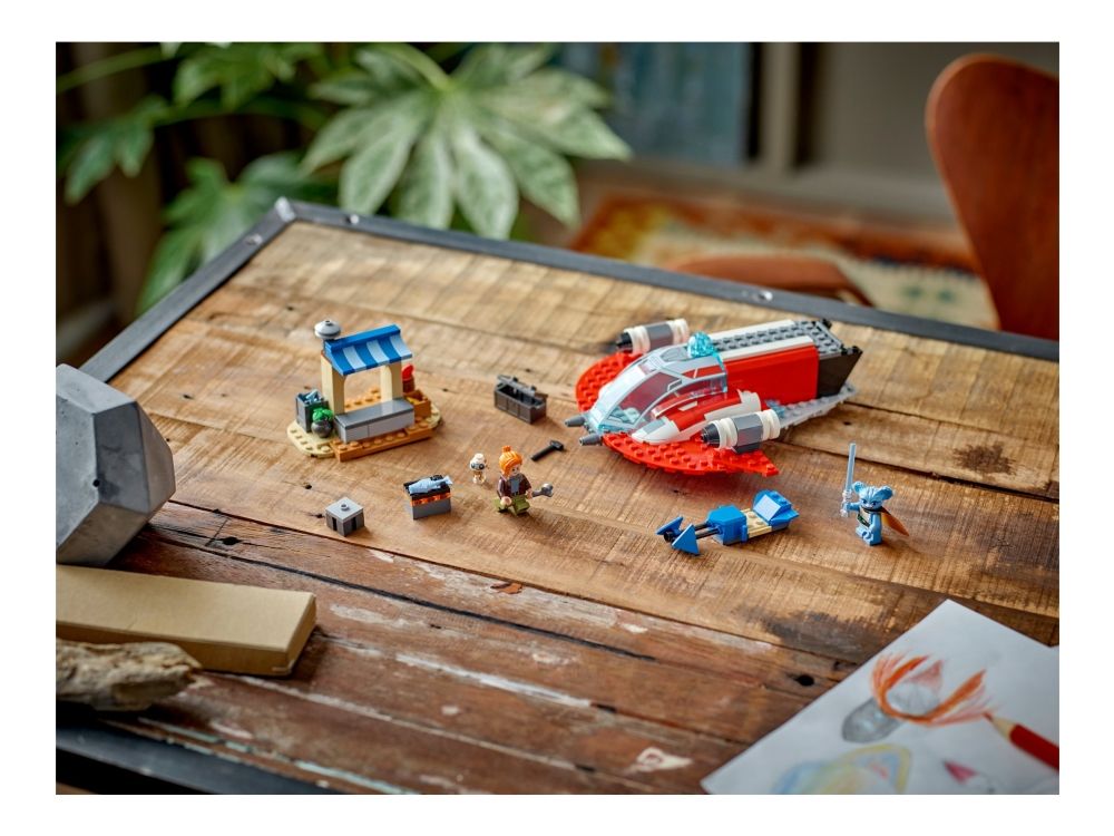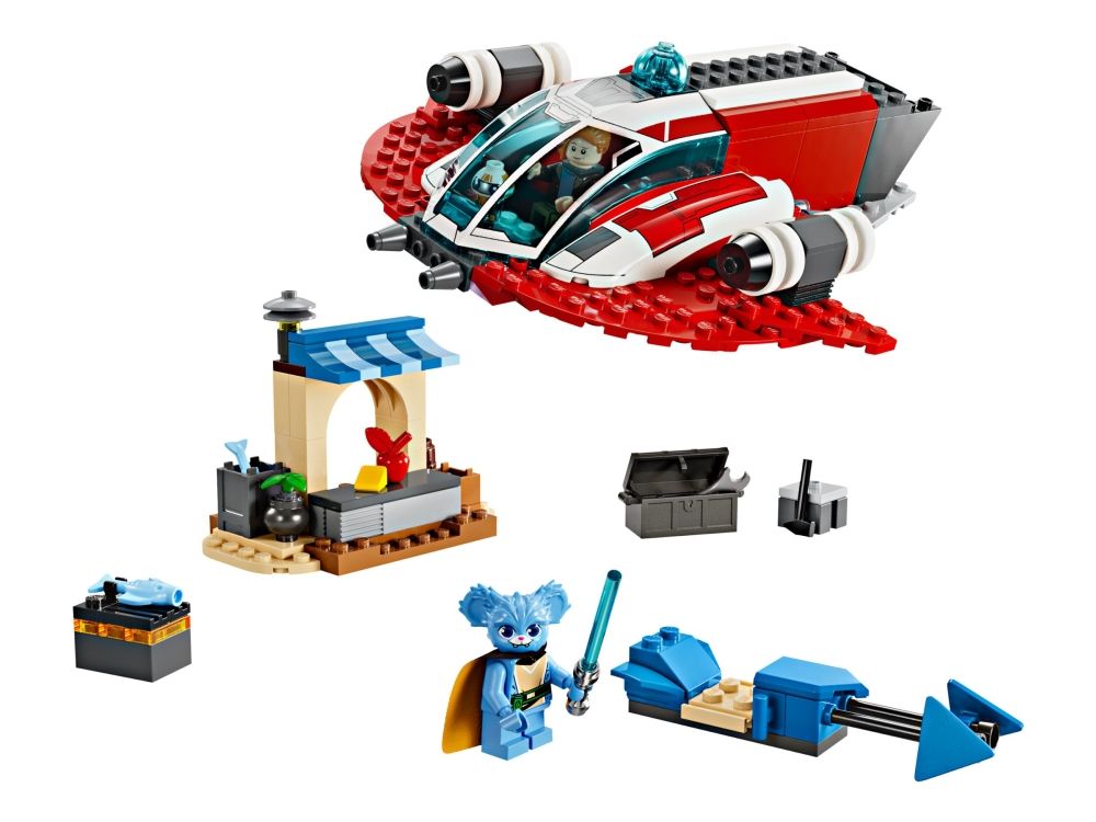 1. Byggeleker av stjerneskipet The Crimson Firehawk og speedersykkel – Med dette startsettet kan unge barn kan bygge Star Wars™ kjøretøy og iscenesette historier med heltene fra Star Wars: Unge jedier på eventyr