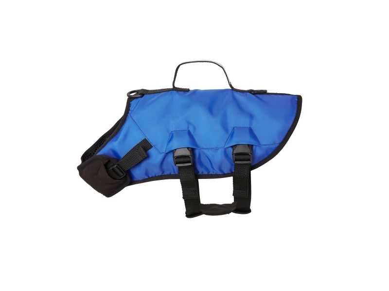 Välbalanserad hundflytväst med lyfthandtag och reflex på ryggen. Breda band med snabbspännen, D-ring för koppel. Velcro -vadderad halsring och magplatta för att undvika skav