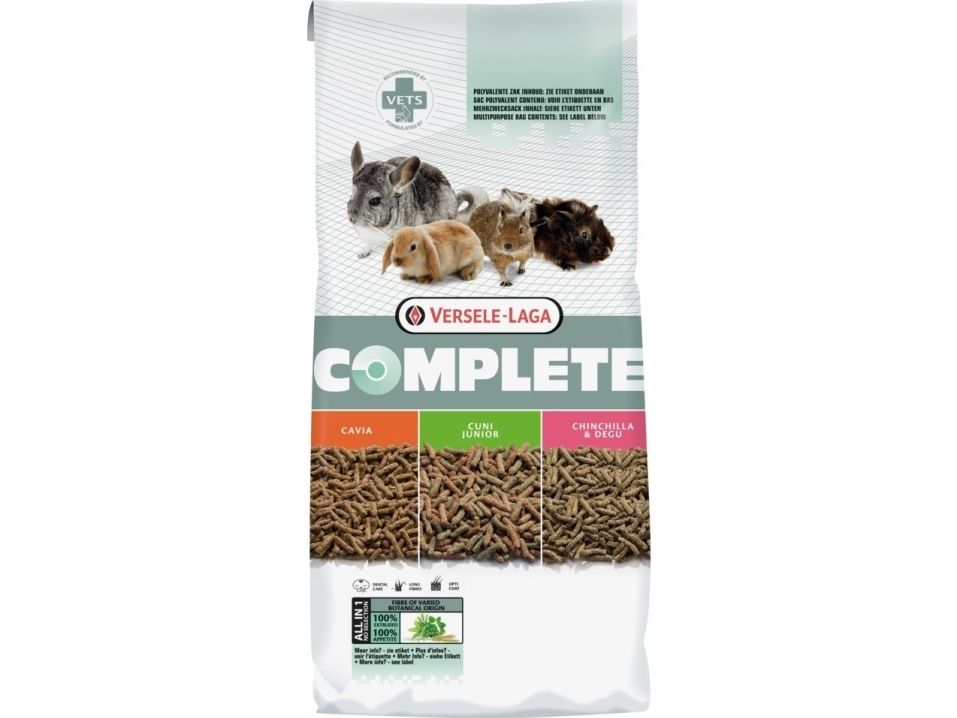 Versele Laga Complete är det ultimata marsvinsfodret för att främja en hälsosam och balanserad kost. Med sin noggrant utvalda sammansättning av vegetabiliska derivat, frukt, frön och prebiotika ger det allt ditt marsvin behöver för optimal hälsa. Med en imponerande näringsprofil innehåller det 14% protein, 3% fett, 20% råfiber och viktiga mineraler som kalcium och fosfor. Dessutom är det berikat med essentiella vitaminer och spårämnen, inklusive vitamin A, D3, E, C och viktiga mineraler som järn, jod, koppar, mangan, zink och selen. Ge ditt marsvin den bästa vård och näring med Versele Laga Complete för att hålla dem glada och friska.Beroende på marsvinets storlek, ras och ålder rekommenderas en genomsnittlig daglig matdel på 35 till 50g.