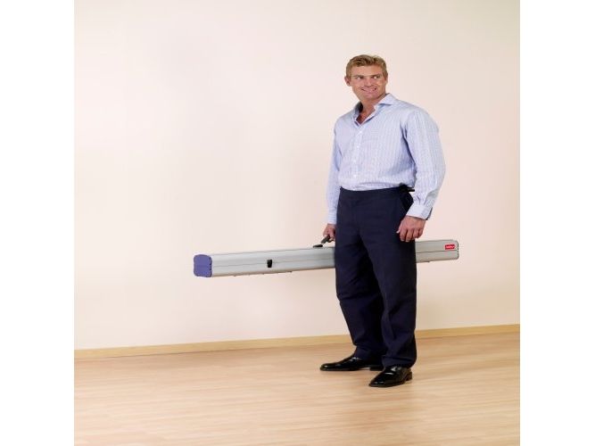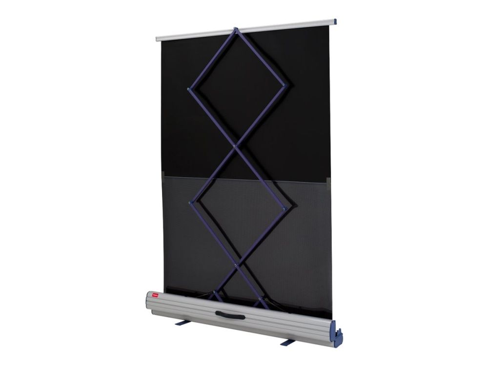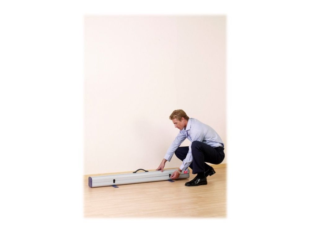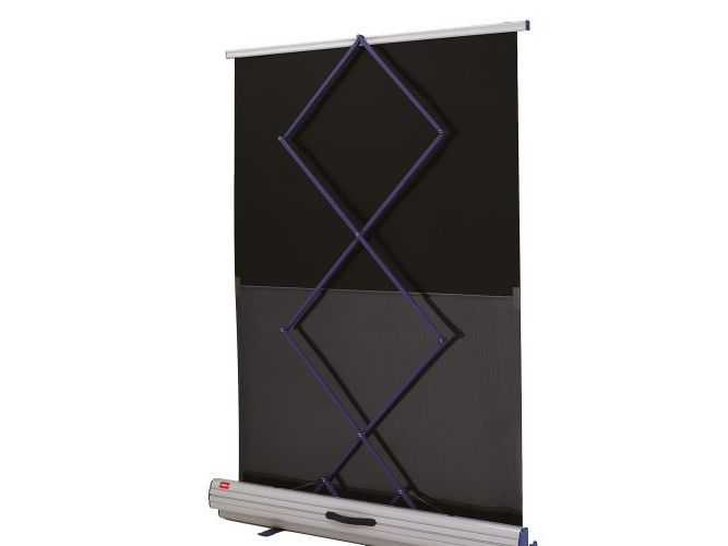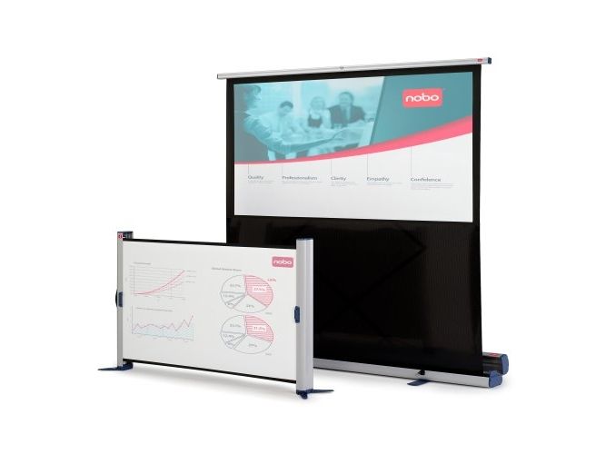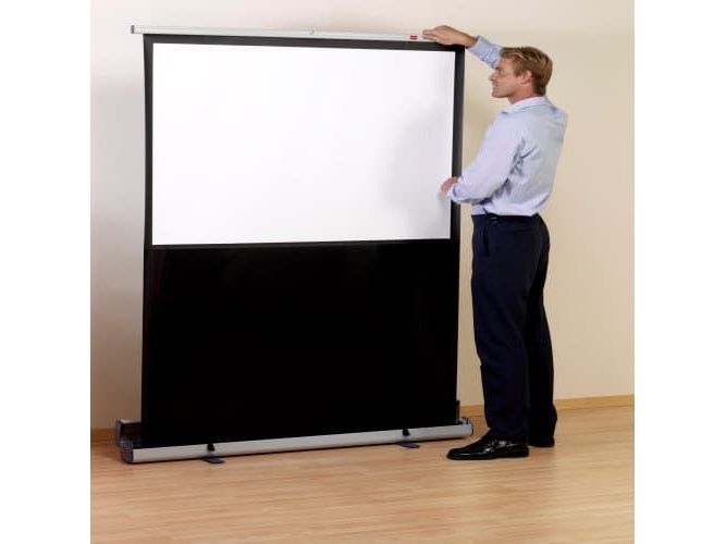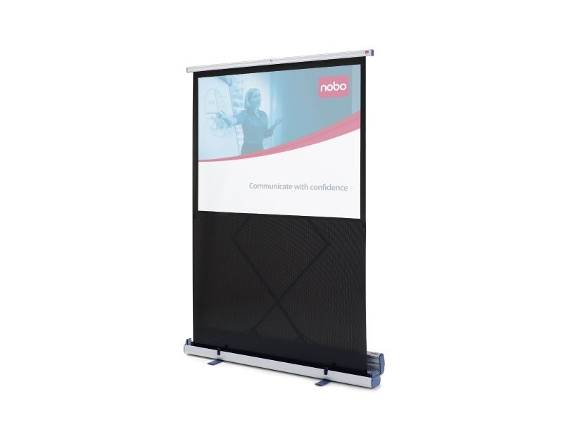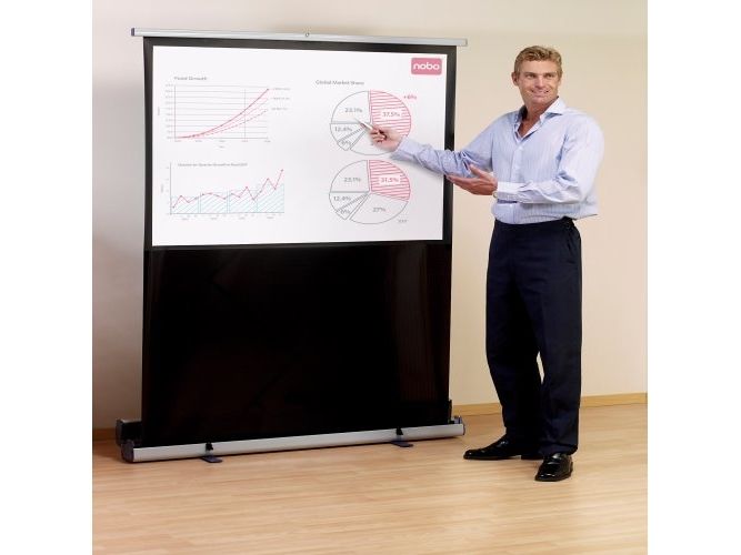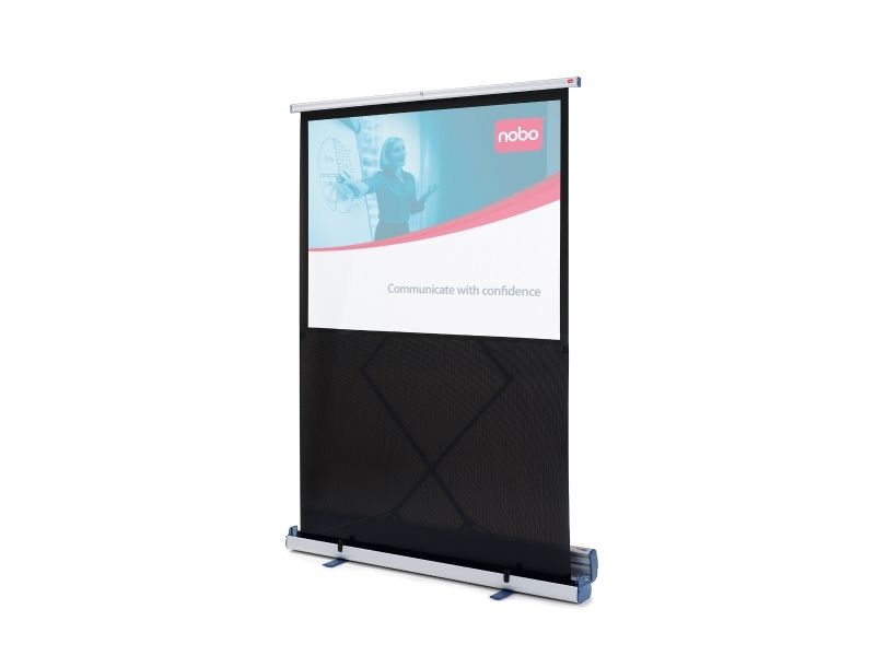This Nobo Floorstanding Portable Screen features 2000mm diagonal viewing area, widescreen 4 3 format, lightweight construction, unique pressurized air system for smooth operation and power-assisted height control, folds into robust integral carry case.