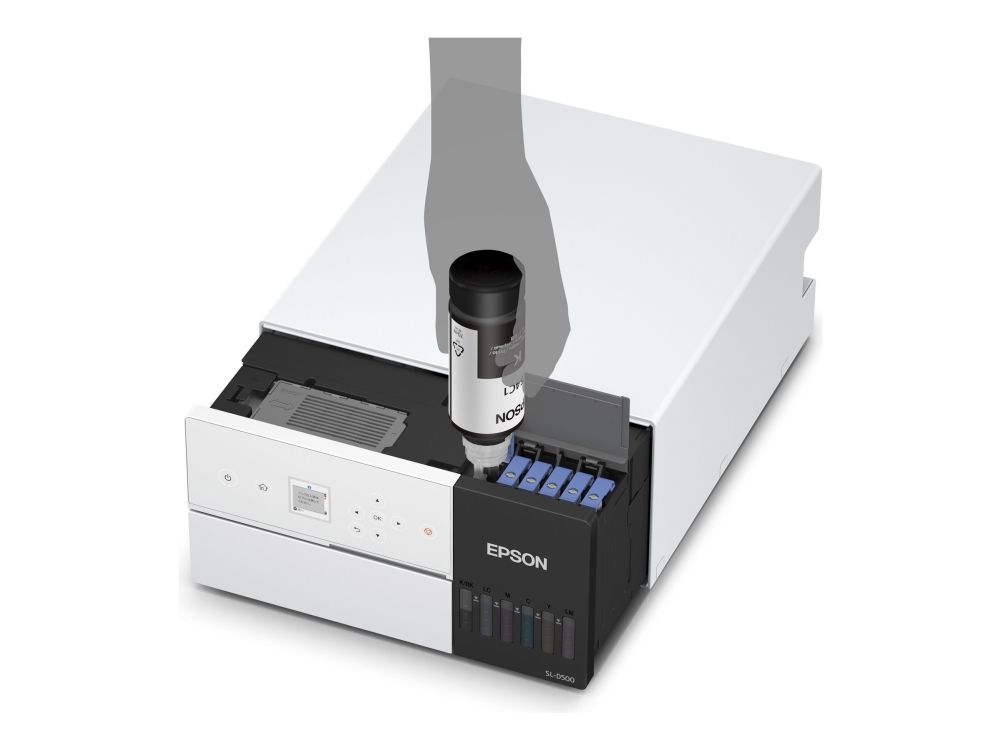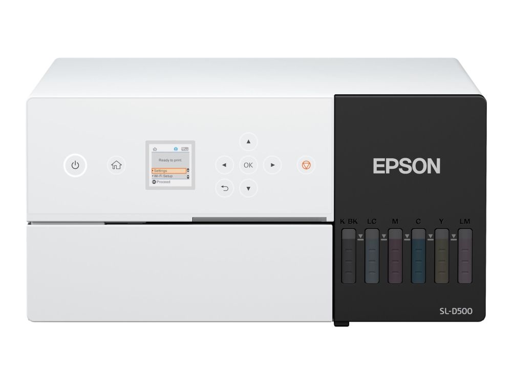 SL-D500 er ideell for fotoforhandlere, kopibutikker, designere og kunstnere, samt for arrangementer, hotell- og restaurantbransjen og fotoboks-markedet. Denne kompakte og lette produksjonsskriveren er plasseffektiv, bærbar og stabelbar. Den produserer bilder av samme høye kvalitet som SL-D1000(A) og er ideell for produksjon av 10x15 cm enkel- og tosidige bilder, kalendere og kort.