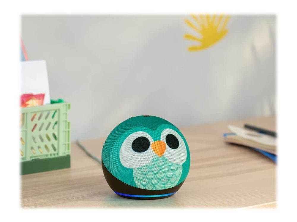 Meet Echo Dot Kids - Amazon's popular and cutest smart speaker with Alexa. The fun design features an improved speaker, delivering clear vocals and vibrant sound. Kids can ask Alexa for homework help, to play music, read bedtime stories, and more.