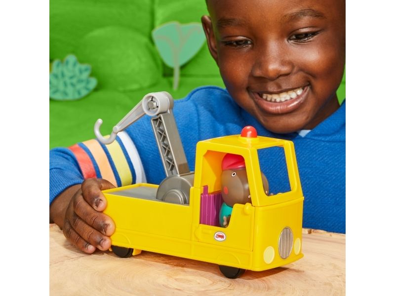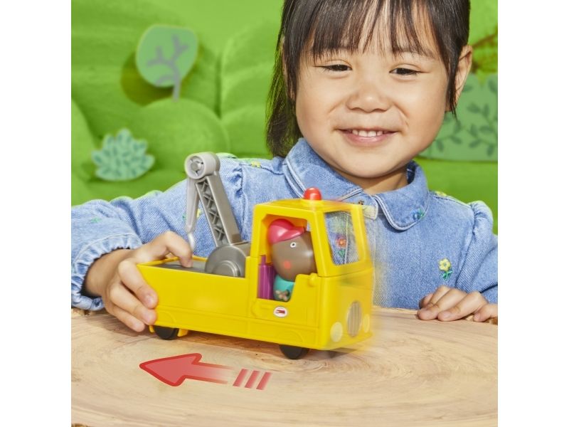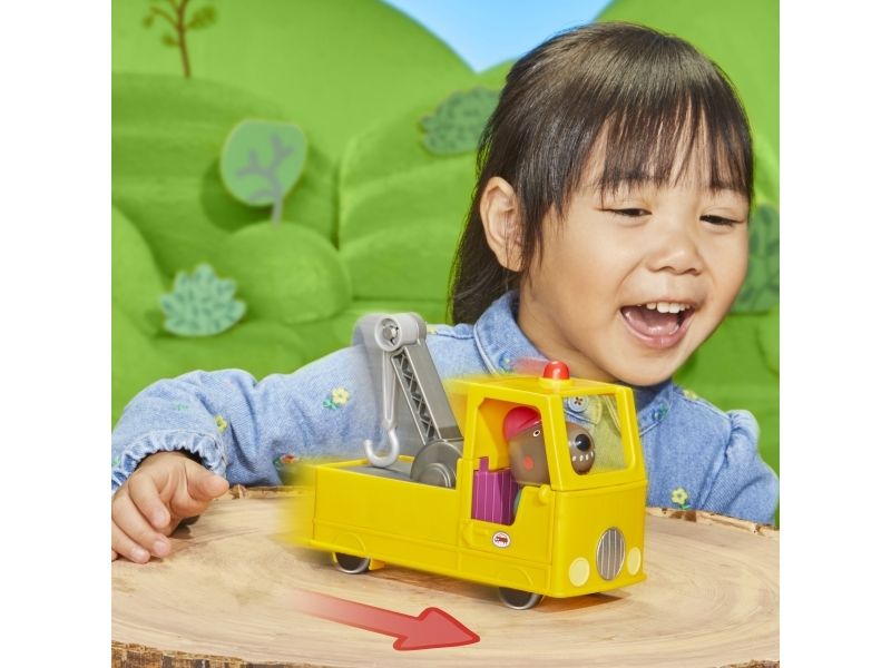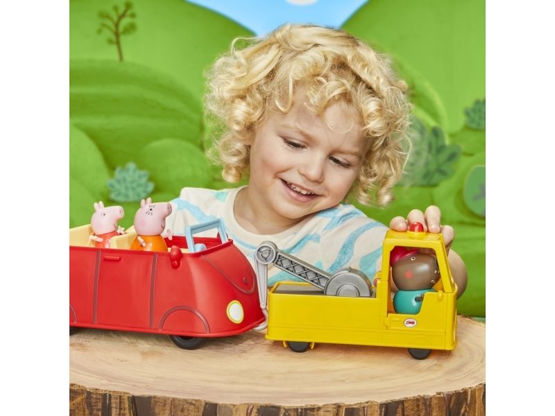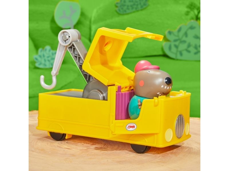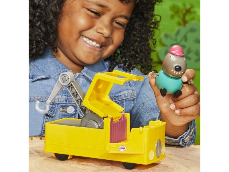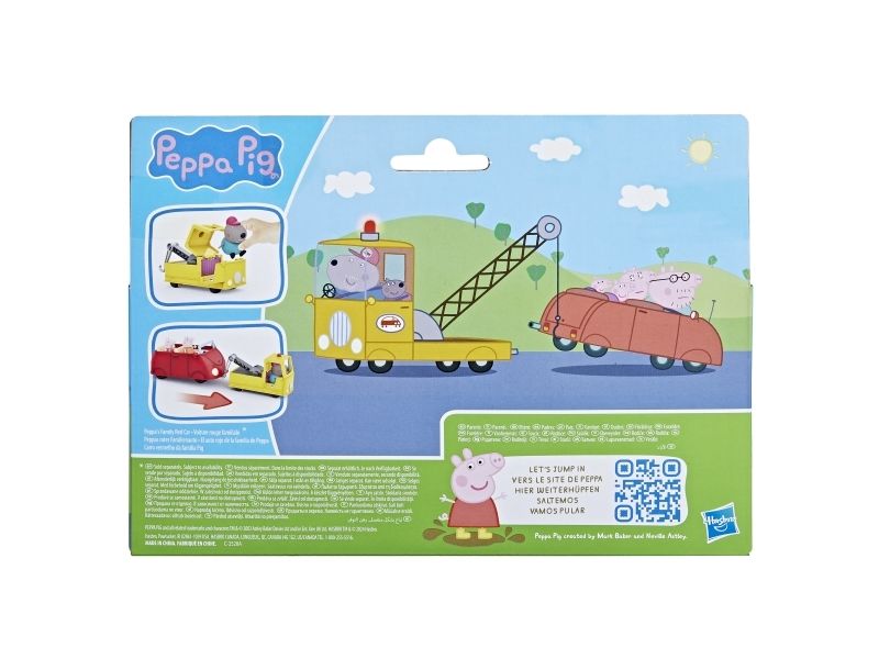 Å, nei, har bilen fått problemer? Ikke bekymre deg – Bestefar Hunds tauebil er her! Dette Peppa Gris-settet leveres med en tauebilleke som trekkes tilbake – bare rull den bakover og se den kjøre! Bestefar Hund-figuren passer i førerhuset, og det hengslede taket gjør det enkelt for små hender å få figuren inn og ut. Den flyttbare tauekroken lar barna forestille seg scener fra serien, eller de kan finne opp sine egne nye eventyr! Peppa-leker som Bestefar Hunds tauebil er basert på Peppa Gris-favorittkarakterer og er flotte gaver til gutter og jenter fra 3 år, eller barn som elsker anleggsleker eller lekekjøretøy. © 2023 ABD Ltd/Ent. One UK Ltd. Hasbro og alle tilknyttede begreper er varemerker som tilhører Hasbro.
