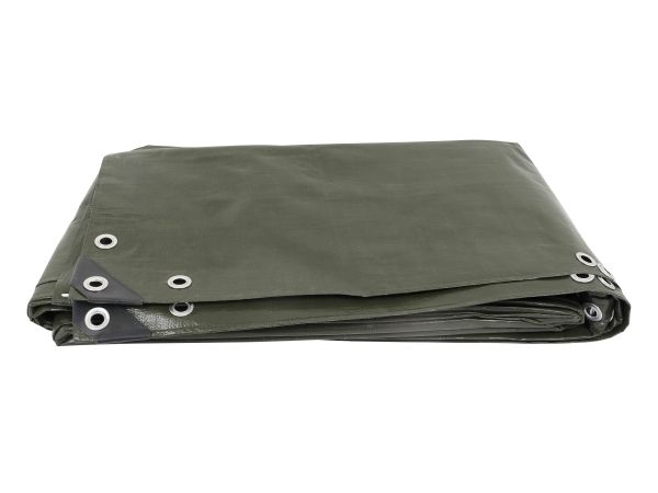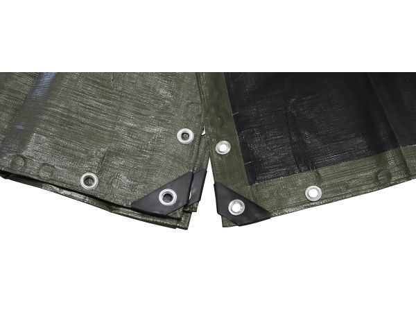 Ekstra kraftig 2-lags-presenning 180 g/m2 Størrelse: 1,45 × 2,35 meter = 3,4 m2 Bemærk: De anførte mål er eksakte mål +/- 3,0%! Vægt er incl. alu øjer og svejsninger. 2 stk. aluminiumssejlringe for hver halve meter Ekstraforstærkede hjørner med 3 stk. aluminiumssejlringe Dobbeltsvejset kantforstærkning Dobbeltlamineret Vindtæt og vandafvisende UV-bestandig, så den ikke nedbrydes af solens stråler Meget høj bæreevne Farve: mørkegrøn og sort