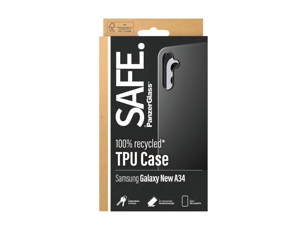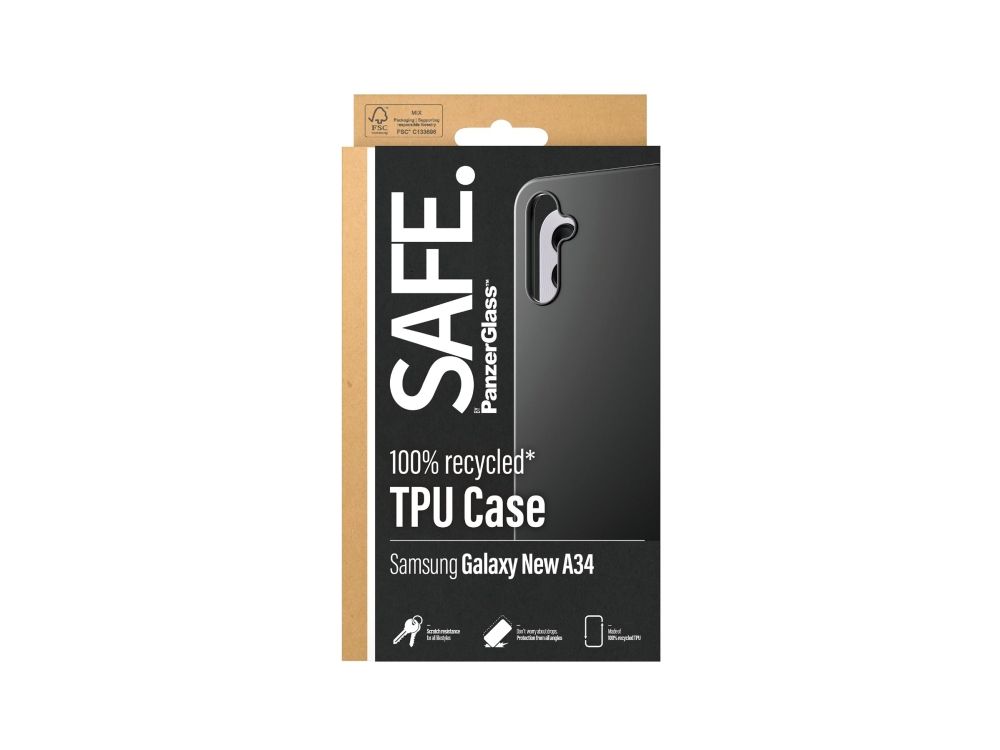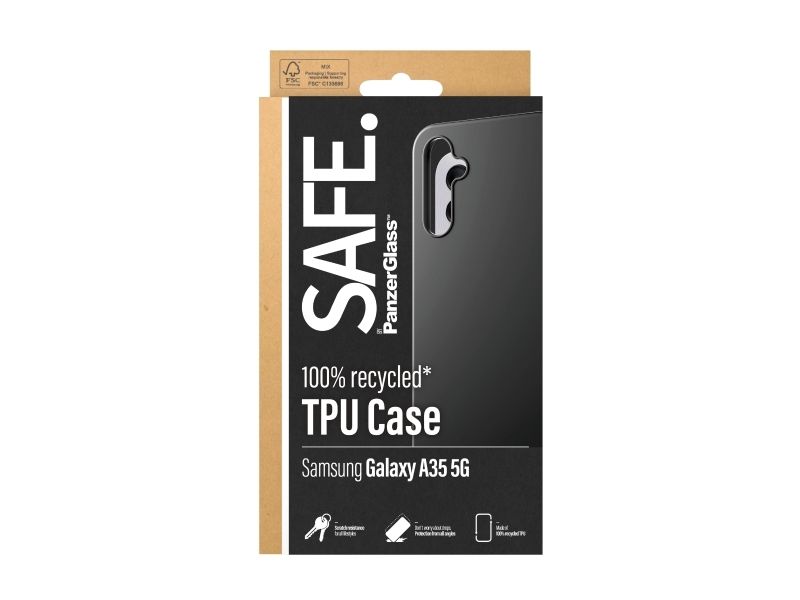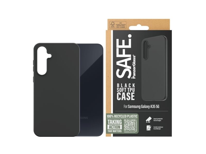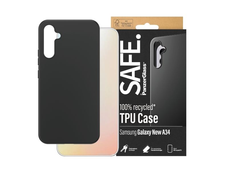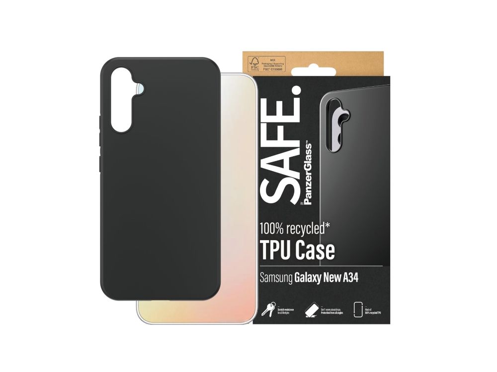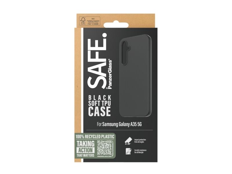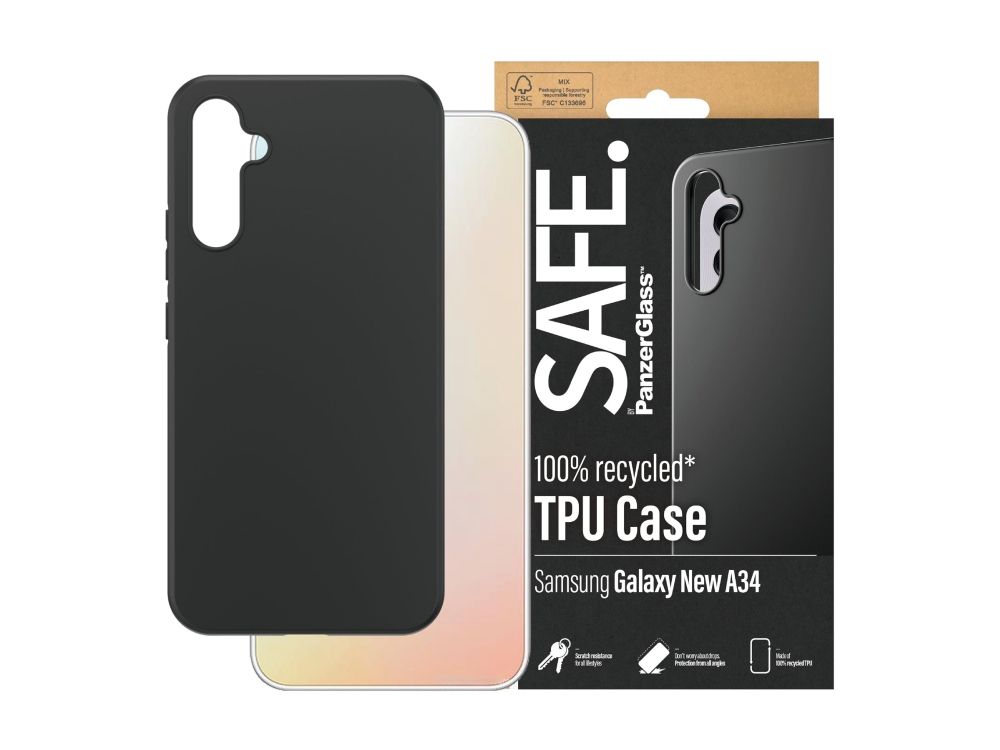 Protect your phone from pocket plunges, backseat bumps and freaky Friday-night falls with the Soft TPU Case from SAFE. by PanzerGlass ?. The thin, sleek and black case is made of 100% recycled plastic and shields your phone effectively while giving you full access to all of its functions. It is wireless charging compatible and anti-yellowing, ensuring that your case will continue to look good, day after day – even when exposed to sunlight and beach parties.The Soft TPU Case protects and prolongs the lifetime of your phone so that one day you can pass it on to someone else who will love it just as much as you do. This is one way of working toward a more sustainable future. Another is to use less packaging: For this case, we havemanaged to reduce the paper packaging by approximately 30%* compared to previous models. This product comes in a recyclable FSC-certified box.Installation is easy. Just click on the case and you can breathe freely, knowing that you'll never again fear the terrifying sight of your phone tumbling to the ground. This may not happen, but if it does, you'll regret not having clicked "add to cart". And remember: If you want to take extra good care of your phone, you can combine the case with a screen protector and a camera lens protector from SAFE. by PanzerGlass .*Measured by third-party lab by comparing the mass of the new paper packaging introduced in 2023 with the mass of the previous paper packaging introduced in 2022 (CPRTC, report No. ZSA20231301-0016).