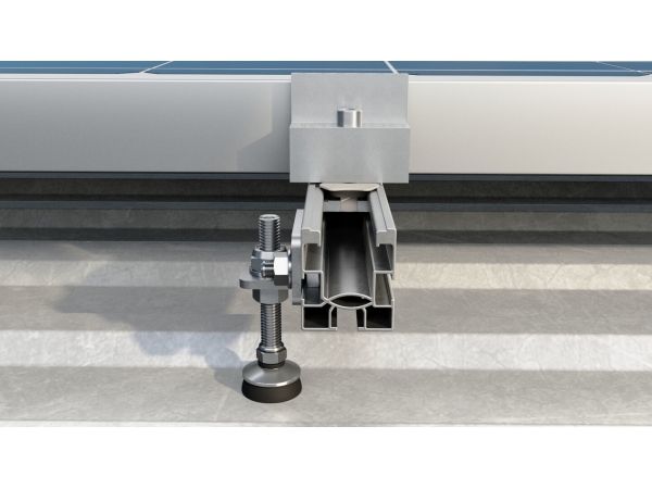 Tilslut solcelleskinnen ved hjælp af det lange hul med skruen SKS M 8 og flangemøtrikken MU FM 8 med MW vinkelholderen