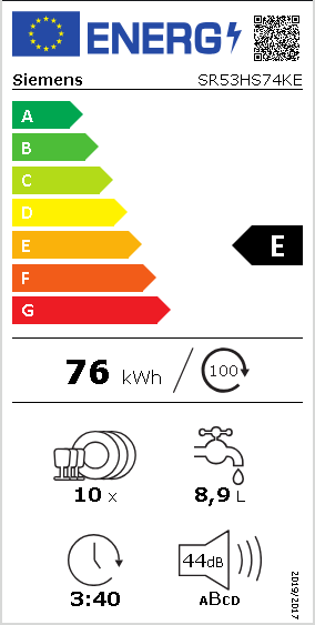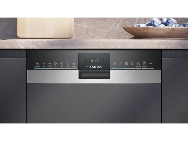 Siemens iQ300 SR53HS74KE, Halvveis innebygget, Slimline (45 cm), Sort, Rustfritt stål, Berøringskontroll, 1,75 m, 1,65 m