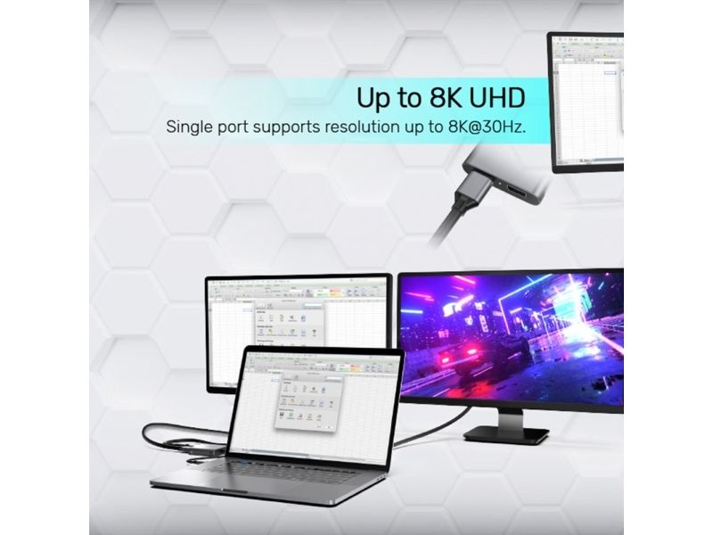 Discover a solution for your display needs with the Unitek video adapter. Designed to cater to a wide range of display requirements, this adapter supports an impressive 8K60Hz resolution, ensuring that you get the most out of your high-definition screens. With dual 4K60Hz support, it's perfect for users looking to set up multiple monitors without compromising on quality. The inclusion of DisplayPort Alt mode, along with Multi-Stream Transport (MST) and Single-Stream Transport (SST), offers flexibility for various display configurations, while HDR support ensures vibrant and lifelike colors. Built to last, the adapter features a durable aluminum housing and an LED status indicator, making it a reliable and stylish addition to any setup. Whether for professional use or entertainment, this Unitek video adapter is designed to enhance your visual experience.