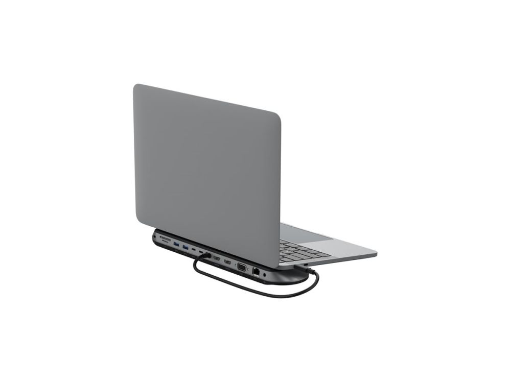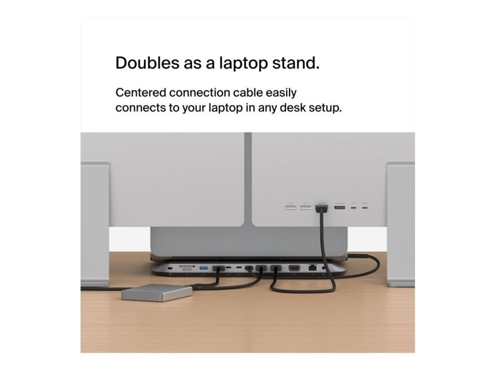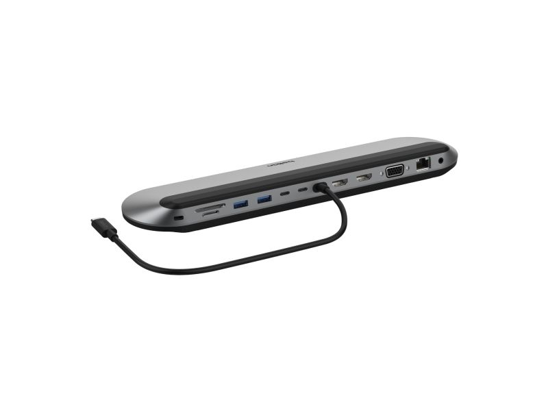 The Belkin CONNECT Universal USB-C 11-in-1 Pro Dock streamlines connectivity with multiple ports designed for modern multitasking. With support for up to 3 monitors, it enhances productivity by allowing simultaneous display usage. The dock features a range of interfaces, including HDMI, VGA, and Ethernet 2.5GBase-T, catering to various connection needs. Additionally, it offers USB-C Power Delivery with 100 W for fast charging of devices while maintaining robust data transfer speeds of up to 10 Gbps. Versatility is emphasized with integrated SD and microSD card readers, making it easy to access files on different media formats. Built with sustainability in mind, this docking station is made from 72% post-consumer recycled materials. The design includes a notebook stand function and complies with Plug-and-Play standards for effortless setup. Experience a clutter-free workspace without sacrificing performance with the Belkin CONNECT Universal USB-C 11-in-1 Pro Dock, perfect for professionals on the go or anyone looking to enhance their home office setup.