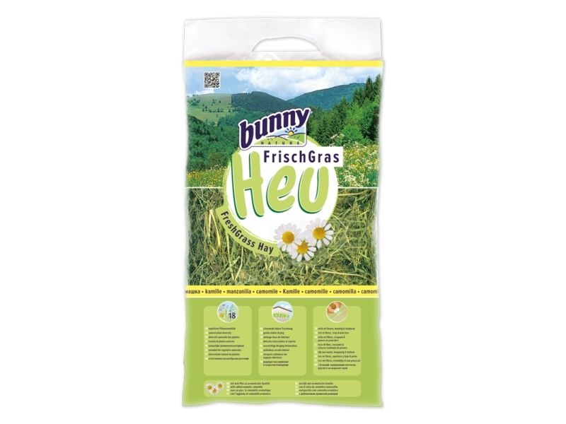 Dejligt hø med kamilleblomster til kaniner, marsvin og andre gnavere Højkvalitets hø med en dejlig duft og smag af kamilleblomster - til glæde for dit kæledyr, der får sig noget at udforske og smaske i sig. Hvad enten du har kanin, marsvin eller anden gnaver er det altid fornuftigt at dit kæledyr har sig noget variation i forskellige hø-typer. Bunny Nature FreshGrass Hø - med kamilleblomster er: Med naturlig plantevariation. Skånsom indendørs tørring. Rig på fibre, sprød og støvfri. Med naturlige næringsstoffer og grovfoder. Hø er en grundlæggende føde for mange dyr. Andelen af hø i kosten er høj, så kvaliteten er meget vigtig. Afgørende for accept, men også for kosten og opfyldelse af de helt naturlige behov. Bunny Nature FreshGrass hø står for den højeste kvalitet med maksimal variation af planter. Bunny Nature sørger for, at høet tilbyder dyrene maksimal smag og næringsstoffer takket være dets forskelligartede planter. For at sikre, at dette ikke går tabt under forarbejdningen, bruges kun skånsomt indendørs tørret hø. Dette er den eneste måde for at undgå skadelige miljøpåvirkninger, og høet forbliver lige så naturligt som det var umiddelbart efter høsten, uden tab af vitaminer. Og fordi hø skal være rig på fibre, sprødt og støvfattigt, kommer intet andet i poserne. De sprøde stængler og det optimale råfiberindhold er nødvendige for optimal tandslid og fordøjelsen. Bunny Nature sikrer særlig god høkvalitet, så dyrene har det godt.