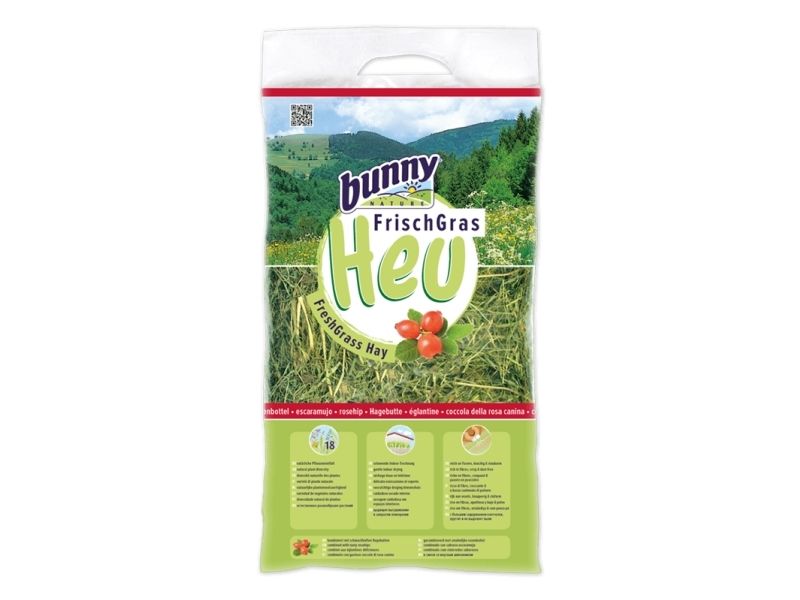 Lækkert hø med hyben til kaniner, marsvin og andre gnavere Her får dit kæledyr noget hø, hvor der er tilføjet hyben til glæde for dit kæledyr, der får sig noget at udforske og samtidigt tilbydes forskellige smage. Hvad enten du har kanin, marsvin eller anden gnaver er det altid fornuftigt at dit kæledyr har sig noget variation i forskellige hø-typer. Bunny Nature FreshGrass Hø - med hyben er: Med naturlig plantevariation. Skånsom indendørs tørring. Rig på fibre, sprød og støvfri. Med naturlige næringsstoffer og grovfoder. Hø er en grundlæggende føde for mange dyr. Andelen af hø i kosten er høj, så kvaliteten er meget vigtig. Afgørende for accept, men også for kosten og opfyldelse af de helt naturlige behov. Bunny Nature FreshGrass hø står for den højeste kvalitet med maksimal variation af planter. Bunny Nature sørger for, at høet tilbyder dyrene maksimal smag og næringsstoffer takket være dets forskelligartede planter. For at sikre, at dette ikke går tabt under forarbejdningen, bruges kun skånsomt indendørs tørret hø. Dette er den eneste måde for at undgå skadelige miljøpåvirkninger, og høet forbliver lige så naturligt som det var umiddelbart efter høsten, uden tab af vitaminer. Og fordi hø skal være rig på fibre og støvfattigt, kommer intet andet i poserne. De sprøde stængler og det optimale fiberindhold er nødvendige for optimal tandslid og fordøjelsen. Bunny Nature sikrer særlig god høkvalitet, så dyrene har det godt.