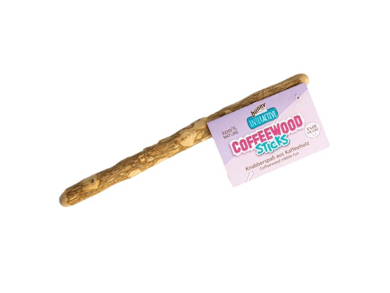 Den nye Coffeewood Sticks fra Bunny Nature er et interaktivt produkt til de små kæledyr. En gnavepind til vidunderlig beskæftigelse for alle kaniner og gnavere Med den ekstra fordel af tandpleje, og samtidig er de et bæredygtigt bidrag til vigtig genanvendelse af råmaterialer.