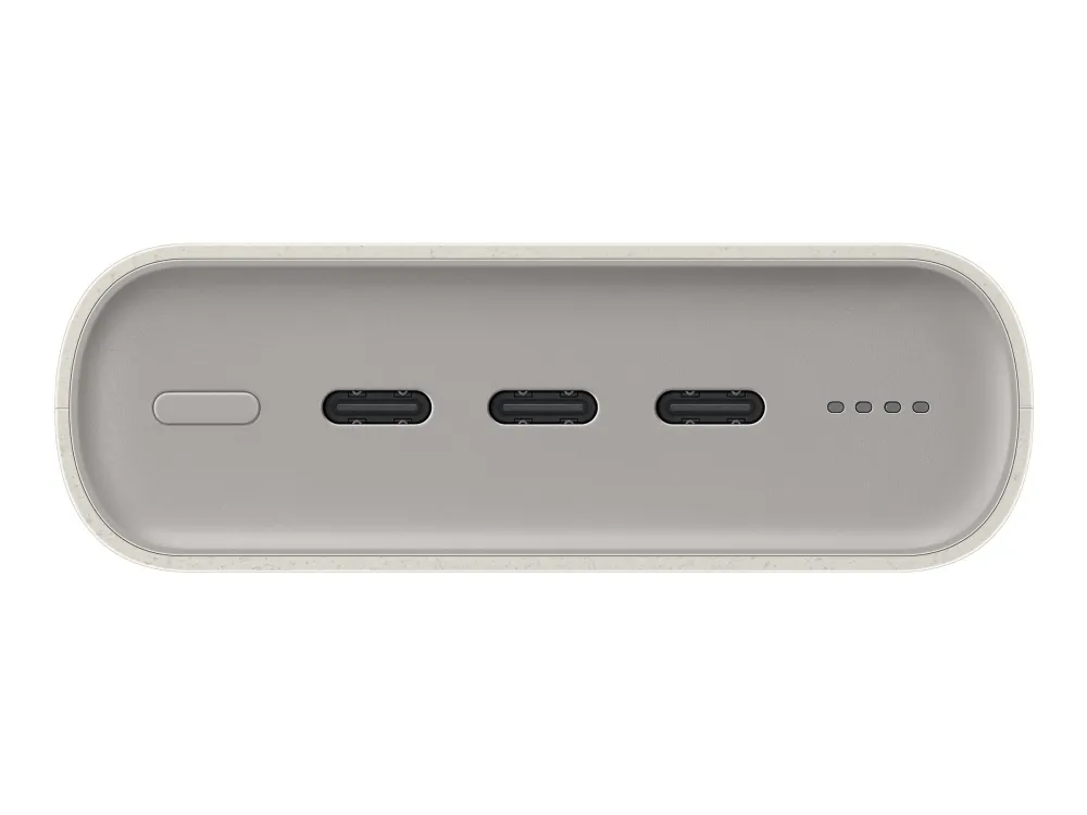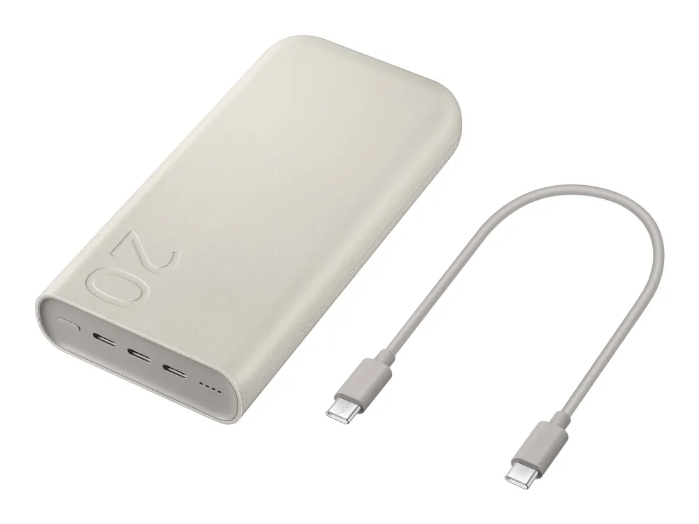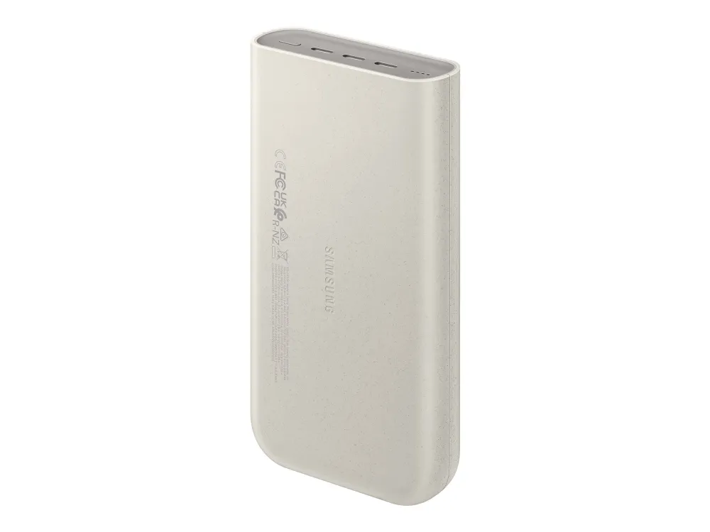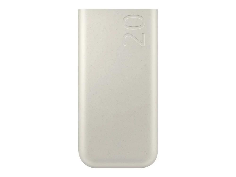 Green power, redefined. The battery pack was thoughtfully designed with the environment in mind, using UL-certified recycled materials to reduce carbon emissions and preserve valuable resources while giving new life to consumer waste.Samsung EB-P4520XUEGEU. Battery capacity: 20000 mAh, Fast charging technology: Power Delivery 3.0, Quick Charge 2.0. USB Type-C ports quantity: 3. Product colour: Beige