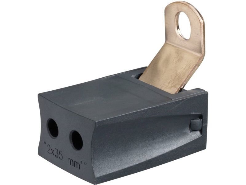 PrismaSeT P. Linergy DP ekstratilslutning til 4-polet Lingergy DP fordelerblok op til 250 A med udgangshjælpekapacitet til kabler på 2 x 35 mm² pr. fase.