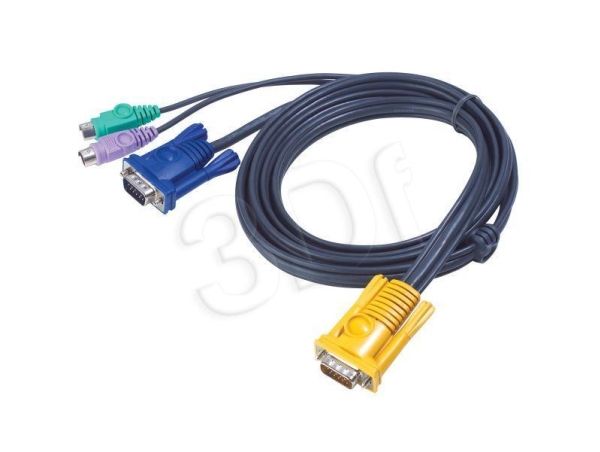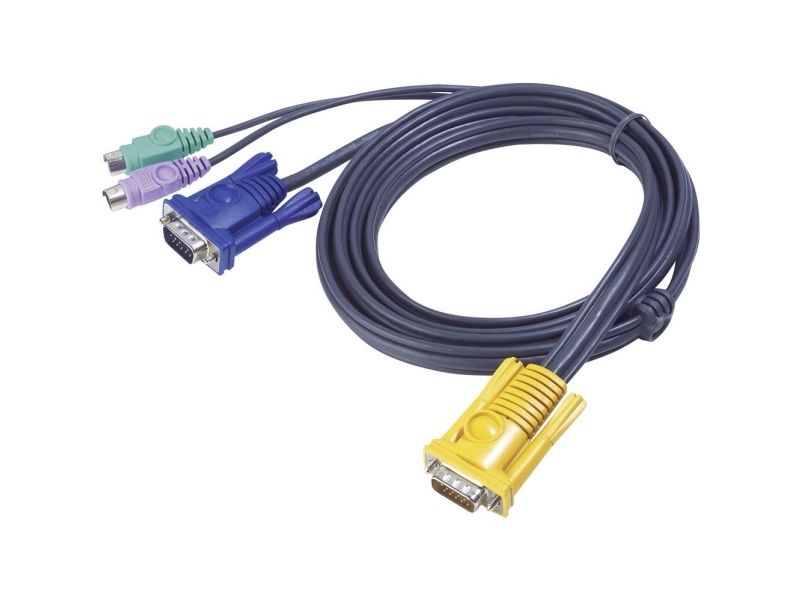 ATEN 2L-5202P - Tastatur / video / musekabel (KVM) - 15-pins SPHD (hann) til PS/2, HD-15 (VGA) (hann) - 1.8 m - for KVM on the NET CS1708i, CS1716i; Maxiport ACS1208A, ACS1216A; Slideaway ACS1216AL