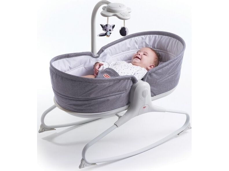 From playing to napping with one click! Uniquely designed grey rocker that easily converts into soothing, cozy napper.