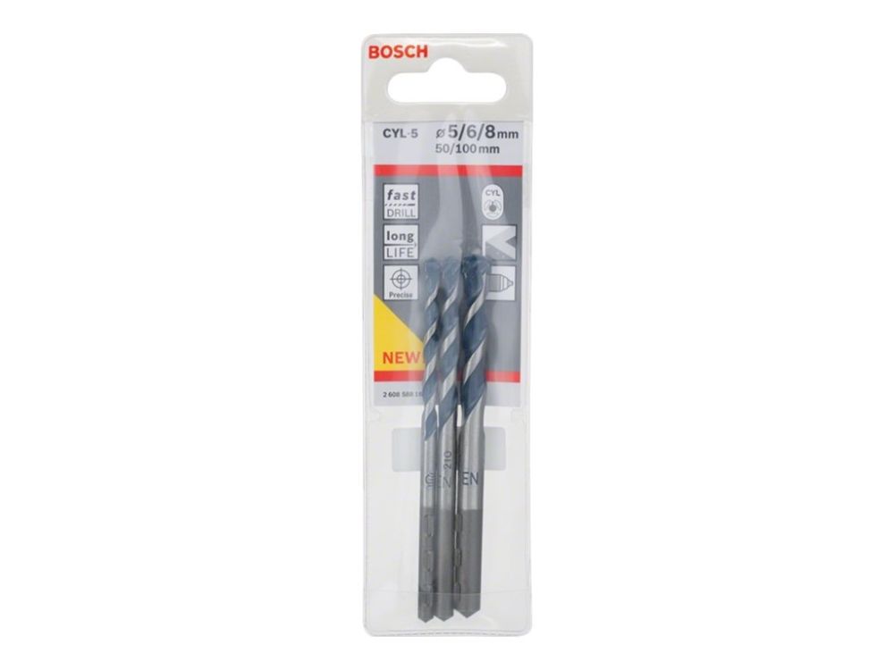 Bosch CYL-5 - Diamantdrillsett - for betong - 3 deler - 5 mm, 6 mm, 8 mm - lengde: 100 mm