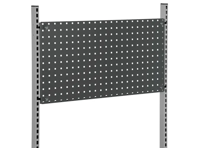 Værktøjstavle med h x b = 480 x 870 mm (som giver c/c -mål 900 mm) Perforeret værktøjtavle med 9 mm firkanthul med cc-mål 38 mm. Med det medfølgende monteringssæt, monteres tavler let på søjler, på arbejdsbordet, på vægskinner eller på monteringsvogne. Tavlen kan desuden monteres direkte på væggen.