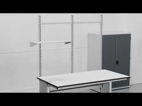 KOMPLET MED BORDPLADE ErgoMulti EL justerbart bord, kpl med påbygningsramme / kabelskjuler - 1200 x 800 mm bordplader. ErgoMulti er et elektrisk drevet understel, som sammen med vore 24 mm grå HPL bordplader giver et optimalt hæve-sænkebord, til brug i værksted, på laboratorier eller andre sammenhænge hvor krav til ergonomi og fleksibilitet er prioriteret. Understelet består af alu, hvis brede profil og placering gør at både stabilitet og benpladsen er optimal på arbejdspladsen. Den plane overflade gør det enkelt at holde det hele rent og hygienisk. Understelet har en kapacitet på hele 250 kg og løfter 20 mm/sek uden belastning. Differencen på 450 mm giver optimal arbejdshøjde på 685 - 1135 mm (uden bordplade). Bordet leveres komplet med kombineret kabelskjuler / påbygningsramme tilpasset vort store sortiment af tilbehør. Vælg understel og Bordplade til at lave arbejdsborde i størrelse tilpasset dit behov, og kompletter med vertikale søjler og værktøjstavler, hylder, værktøjsskab eller andet tilbehør for at lave dit optimale arbejdsbord.
