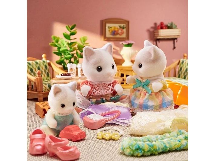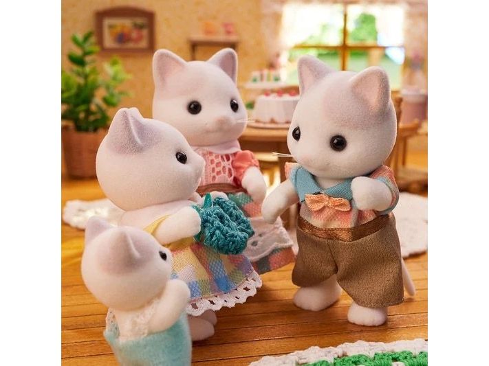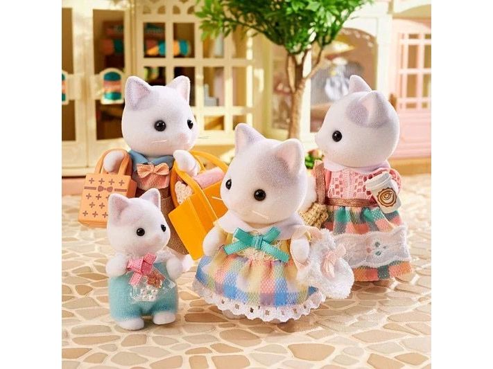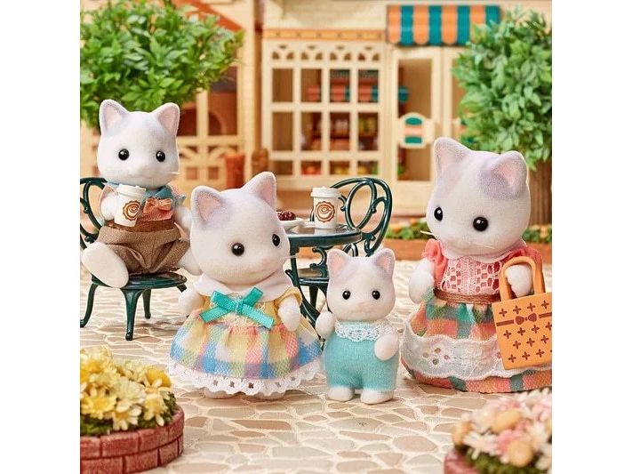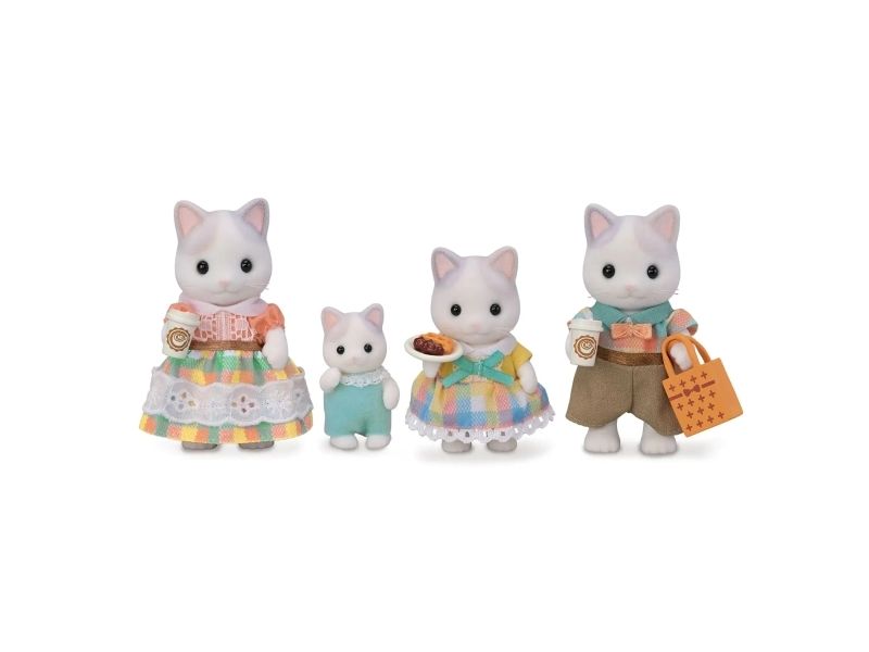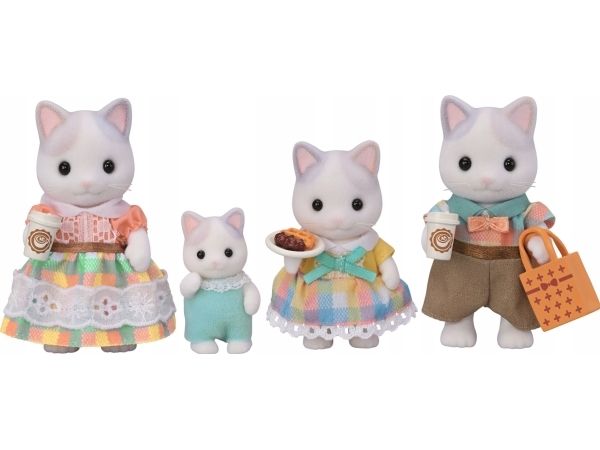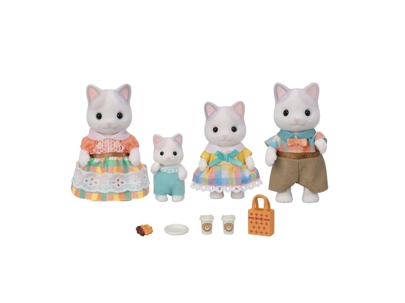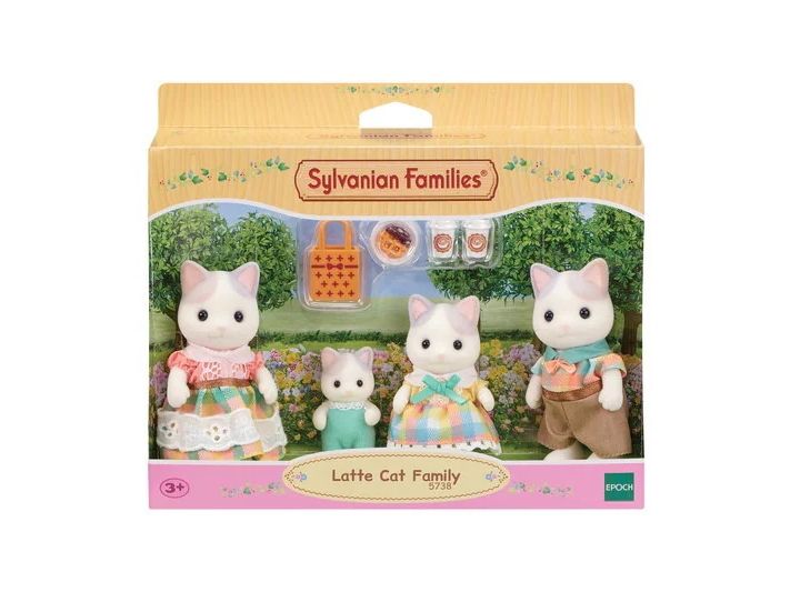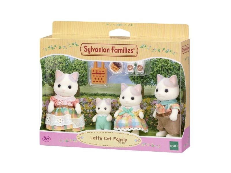 Latte Cat-familien har fire medlemmer: far, mor, pige og baby og diverse tilbehør, herunder drikkevarer, en vaffel og en indkøbspose. Figurerne kan holde drikkevarer og indkøbspose i hænderne. Figurer arme, ben og hoved er bevægelige, tøj kan tages af og på igen. Latte Cat Family har bløde farver og afrundede mønstre. Velegnet til alderen 3+.