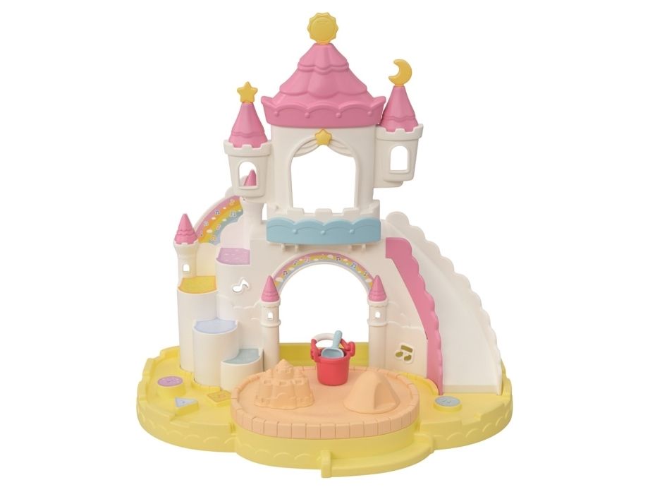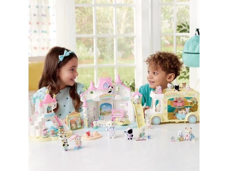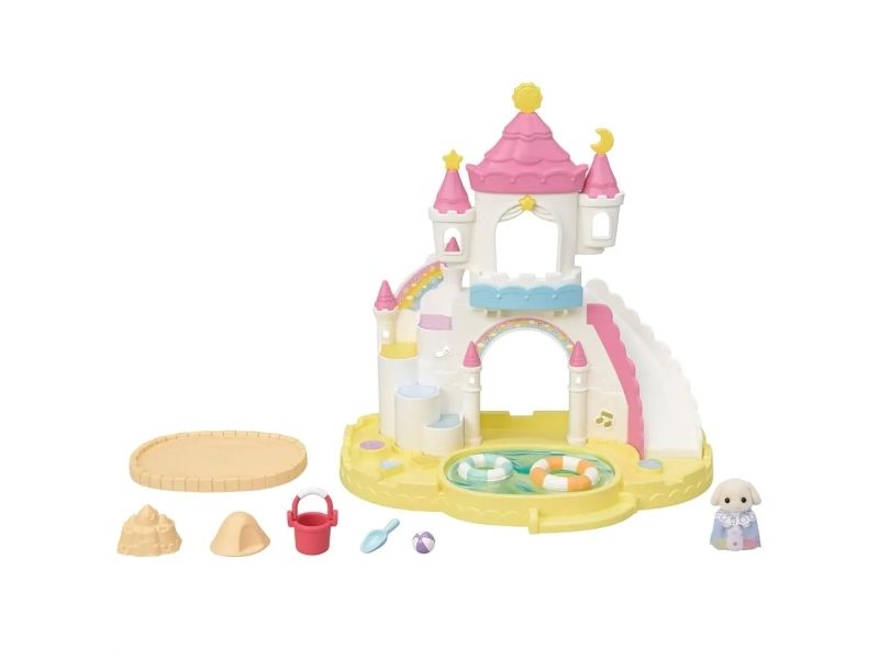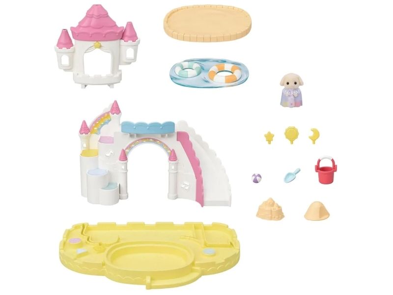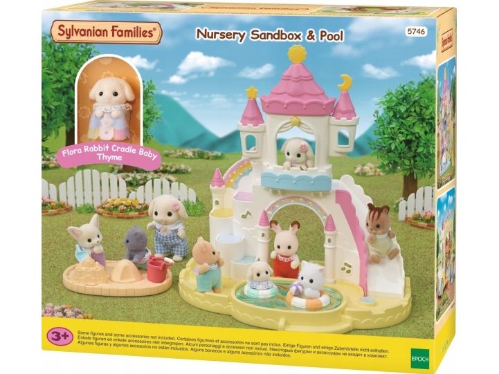 Børnehave Sandkasse & Badebassin sættet kommer med en Flora Rabbit baby timian og flere søde legetøj. Poolen har 2 funktioner: enten en swimmingpool eller en sandkasse. Til svømning har babyer livringe, til sandkasse en spand, øse og en bold. Slottet har vinduer, hvor babyerne kan kigge ud fra og en stor rutsjebane til at komme ned. Kombiner med 5743 Sunny Castle Nursery og 5744 Rainbow Fun Nursery Bus (sælges separat), for at skabe en børnehave, der ligner et stort slot. Velegnet til alderen 3+.