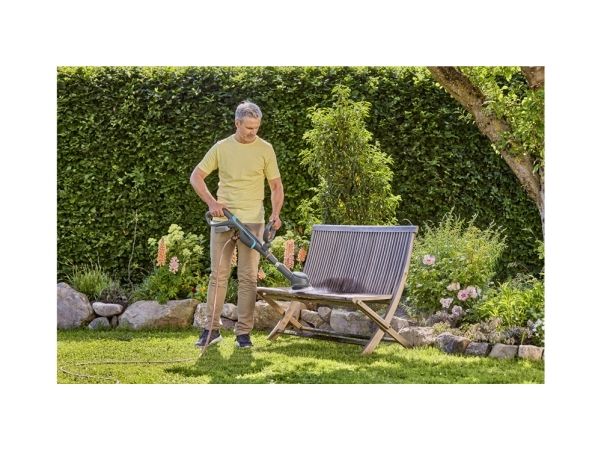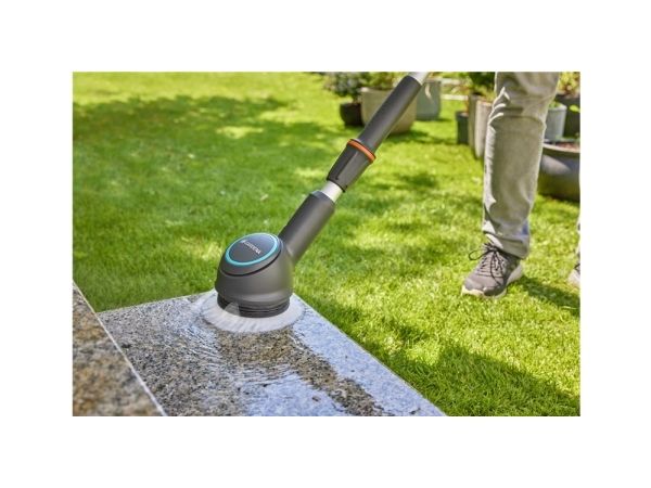 GARDENA ideal er med GARDENA tallerkenbørste til AquaBrush. GARDENA-batteri-multi-rengøringsmiddel er perfekt udstyret til blid rengøring af overflader. Som ekstramodul eller som reservedel egnet til tilbehøret er der udviklet til blid rengøring og behandler følsomme overflader yderst skånsomt. Børstesættet fungerer som udvidelse til GARDENA-universalrengøringsmiddel Patio 14841. Ved batteri-multi-renseren Compact 14840 og Universal 14842 er tallerkenbørste-enheden allerede inkluderet. Hvis en udskiftning er nødvendig, egner denne komplette enhed sig som reservemodul. En enkel og praktisk opbygning af tilbehøret består af GARDENA GARDENA tallerkenbørste Soft til AquaBrush (14847) og tallerkenbørsteholderen. Konstruktionen er nem og overbeviser alligevel med sin robusthed og fremragende resultat. Takket være den smarte opbygning kan rengøringshovedet nemt udskiftes. Det er nok at trække den af holderen. Den nye nylonbørste skubbes op til anslaget og er dermed sikret. Derudover muliggør pudsopbygning montering af standard-poleringspuder. Monteringen sker hurtigt og ukompliceret, også anbringelsen af GARDENA-batteri-multi-rengøringsmiddel AquaBrush sker ubesværet. Rengøringselementet indsættes, fastgøres og fortættes i forlængerstelen til AquaBrush (14845) eller i motorenheden indtil anslaget. Det smukke er: Der er ikke brug for værktøj til hele processen. Rengøringsbørstens børster består af blød nylon af høj kvalitet og et godt rengøringsresultat. Dermed er det ideelt ideal at rengøre selv ridsefølsomme overflader. GARDENA tallerkenbørste-tilbehør til AquaBrush har vanddyser, der fremmer et grundigt rengøringsarbejde. Vandgennemstrømningen kan indstilles i 3 trin på enhedens motorenhed. Selv genstridigt snavs kan nemt fjernes. Konklusionen er en skånsom, men effektiv rengøring med et perfekt resultat. Kan anvendes på mange måder og kan anvendes til andre formål, fra garagedøre og havemøbler over vægge til sten eller træ. Hjørner eller andre svært tilgængelige steder nås endelig igen. Det sørger den praktiske opbygning og den runde form for. Fladebørsten kan nemt reguleres på håndgrebet.