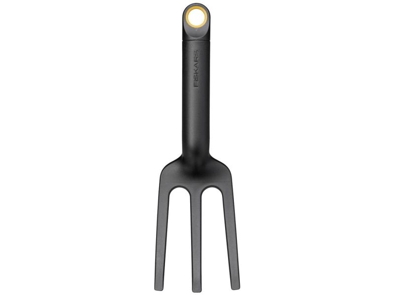 Fiskars Solid Fiskars™ plantegaffel hører til en række ansvarsfuldt producerede, genanvendelige, fremragende haveredskaber, der har lang levetid og er brugervenlig. Plantegaflen består af 65 % genbrugt plast med glasfibre for større stabilitet og har tre smalle, buede fingre, der er ideelle ideal for at lufte jorden, til at fjerne sten og ukrudt og til at fordele kompost i havebede. Plantegaffel er desuden UV-bestandig for at trodse elementerne. Det ergonomisk formede greb reducerer træthed i hånden. Praktisk hul til ophængning for nem opbevaring.
