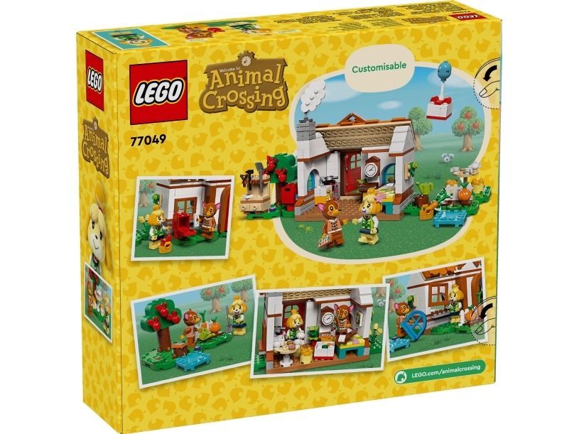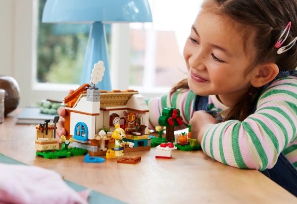 Med barneleken Isabelle på besøk (77049) kan gutter og jenter fra seks år finne på fortellinger inspirert av videospillserien Animal Crossing™. De kan bygge velkjente scenarioer fra videospillet, og de kan finne på nye og fantasifulle fortellinger selv!
