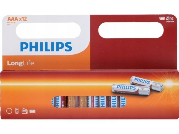 Philips LongLife - AAA / R03 1,5V sinkbatterier 12 stk.