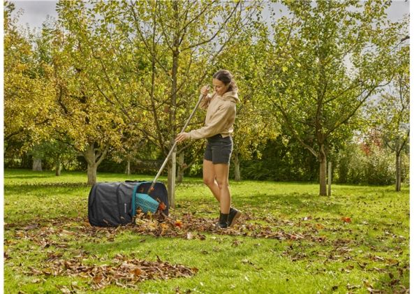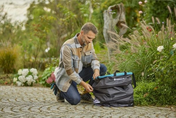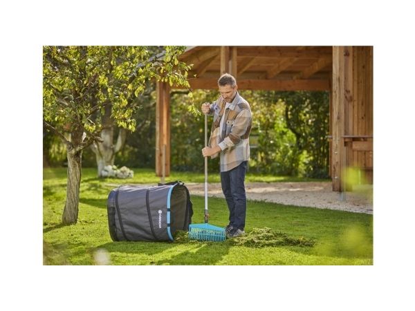 Den holdbare og pladsbesparende GARDENA haveaffaldssæk popup rektangulær, størrelse L er den ideelle affaldsbeholder til et behageligt havearbejde. Firkantet form den firkantede form på affaldssæk giver mulighed for at lægge havesykkeren på siden, uden at den ruller væk. Dermed bliver det overflødigt at bøje og løfte blade og en ergonomisk håndtering, der skåner ryggen, når du skal indsamle og rive haveaffald ned. Havesæk med lang levetid, nem at bære den forstærkede bund sørger selv ved trækning over rå underlag for en fremragende lang levetid af haveaffaldssæk. Desuden har Sack 4 integrerede bærestropper, der gør transporten af haveaffaldet særligt nem på mellemhøje hæve. Løvposen kan indstilles i 3 forskellige højder alt efter behov. Den fulde højde på 60 cm er beregnet til maksimal påfyldning, mens midtertrinnet på 45 cm giver en meget behagelig transport i et lavt bagagerum. For at spare plads kan havesykkeren foldes fladt sammen. Genbrugt materiale det materiale, som GARDENA's sække til haveaffald er fremstillet af, består af over 70 % genvundet plast fra husholdningsaffald.