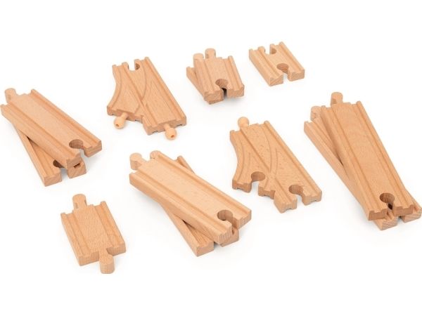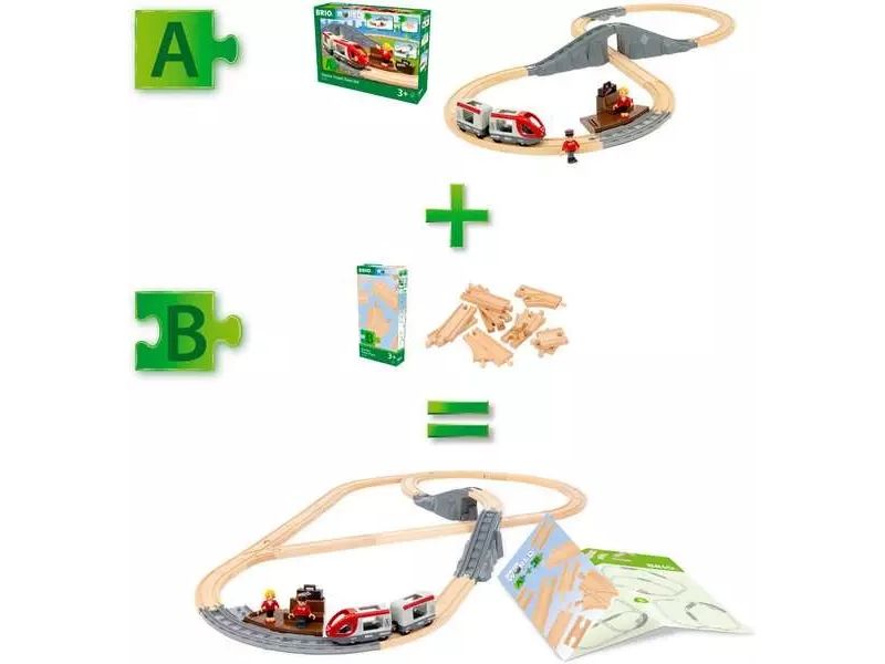 Expand your BRIO World Starter Train Sets with the 36099 Starter Track Pack. This train track expansion pack includes a selection of wooden railway pieces that can be used to create five additional layouts to the 36079 Starter Travel Train Set (sold separately). Combine different length straight tracks, switching tracks and connector tracks and either follow the suggested layouts included or create your own open-ended designs.