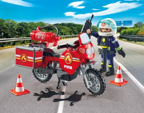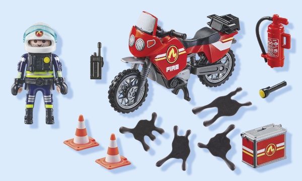 PLAYMOBIL Brandbil på ulykkesstedet med en PLAYMOBIL-figur og masser af udstyr.