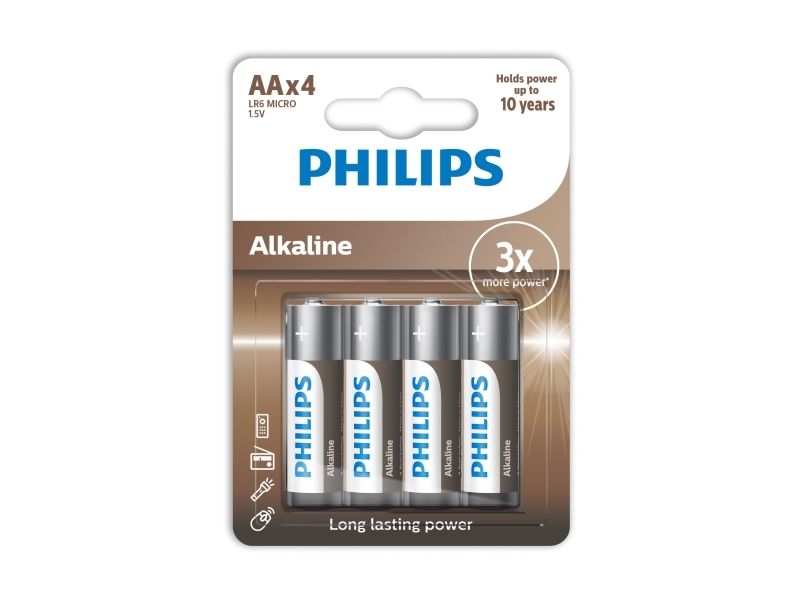 Philips LR6A4B/10, Engangsbatteri, AA, Alkalinsk, 1,5 V, 4 stykker, 5 år