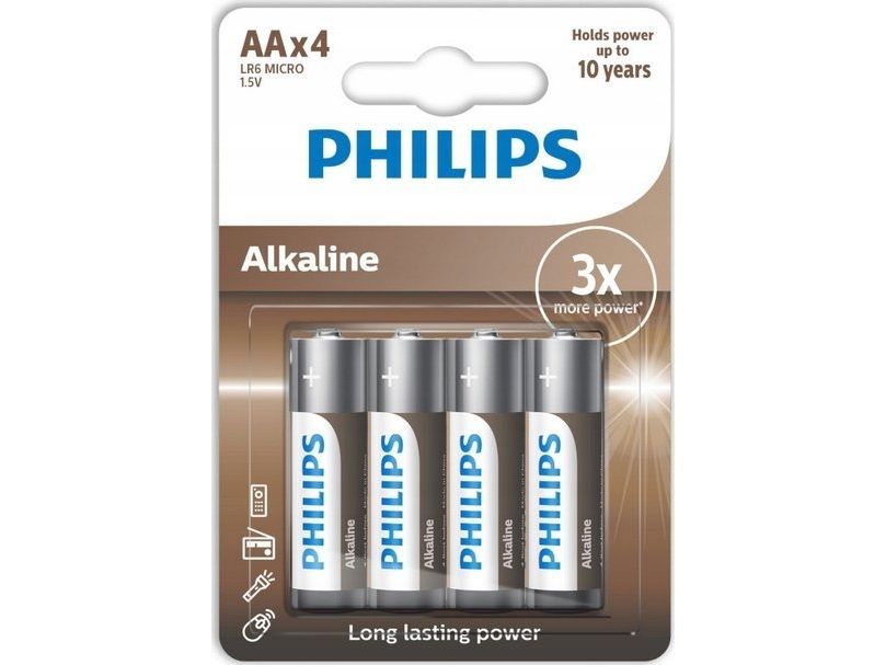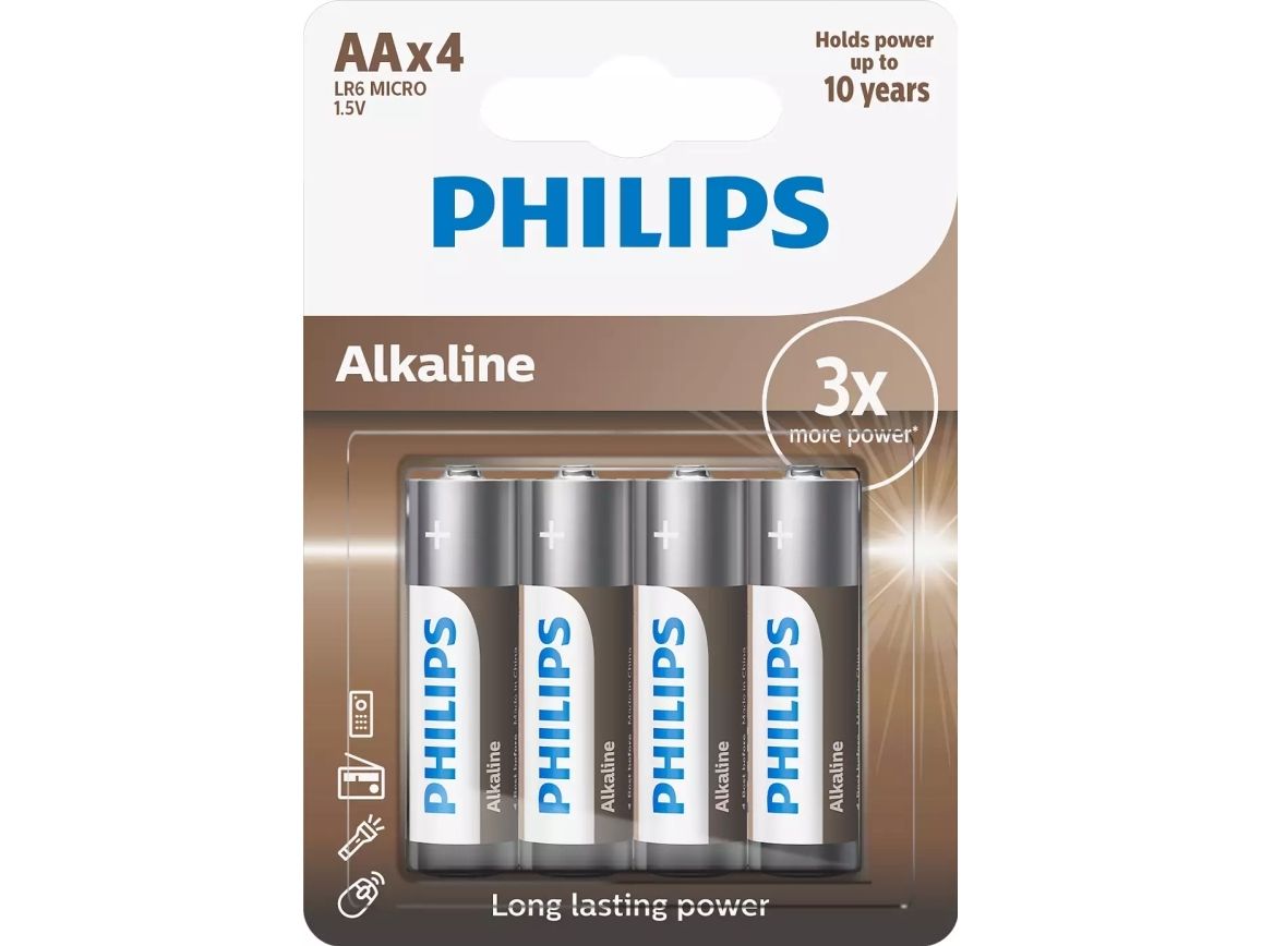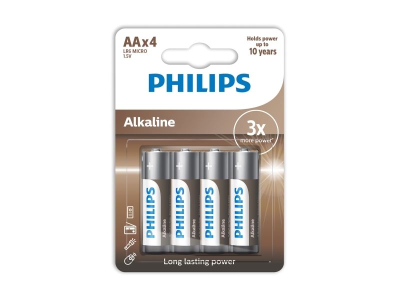 Philips Alkaline-batterier er designet til at levere stabil strøm til elektroniske enheder med højt energiforbrug. De giver længere driftstid og kræver færre udskiftninger sammenlignet med almindelige zink-kul-batterier. Batterierne er fremstillet uden kadmium, kviksølv eller bly. Takket være den lange holdbarhed er de velegnede både til daglig brug og som reserve. ⚠️ Alle batterier mister en vis mængde energi, når de ikke er i brug. Vi garanterer, at batteriet indeholder mindst 80 % af sin oprindelige energi frem til udløbsdatoen.