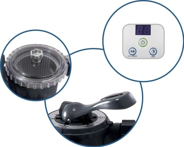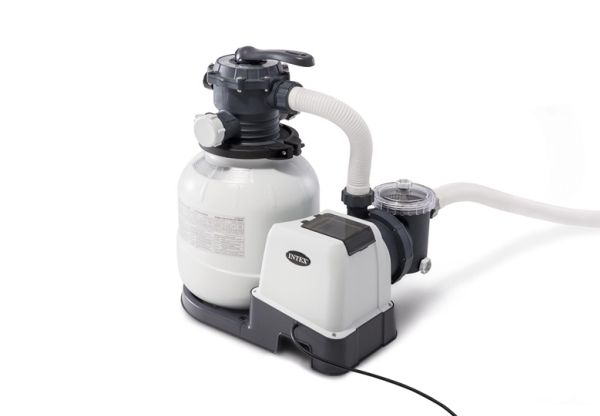 SX2800 SAND FILTER PUMP W/RCD (220-240 VOLT) Sandfiltre har længe været betragtet som en af de bedste metoder til at opnå et klart poolvand af svømmebassiner. Det naturlige og samtidig billige sand gør det fremragende arbejde ved filtrering af skidtpartikler i vand. Dermed er sandfilteret den nemmeste filtermetode på markedet. 220-240 V RCD Sandfilteranlægget Krystalal Clear Model SX2800 fra Intex er et effektivt og effektivt arbejdende filteranlæg med en 6-vejs-ventil for optimal betjeningskomfort og klart vand. Ved hjælp af et stabilt håndtag kan de forskellige driftstilstande filtrere, rense, efterskylle, tømme, cirkulere, indstilles lukket, uden at det er nødvendigt at bruge et værktøj. Intex vandbelebsteknologi forbedrer cirkulationen, filtreringen og vandklarheden i din svømme samt luftkvaliteten. Anlægget har en cirkulationskapacitet på 7,2 m³ eller en pumpeeffekt på 10,5 m³ samt en integreret timer, ved hjælp af hvilken du kan vælge filteranlæggets driftstid. Sandfilteranlægget egner sig ideal til følgende Intex pools: Ultra XTR Frame svømmebassiner 7,32 m; Ultra XTR Rectangular Frame svømmebassiner 9,75 x 4,88 m. som filtermiddel anbefales Glassand (25 kg) eller kvartssand (35 kg), denne medfølger ikke. Sandfilteret kan anvendes i en maksimal vandtemperatur på 35 °C. Ved sæsonens slutning kan filteranlægget tømmes via tømningsventilen uden kraft og ekstra arbejde. Sandfilteranlægget af mærket Intex imponerer med sin nemme håndtering og den integrerede timer!