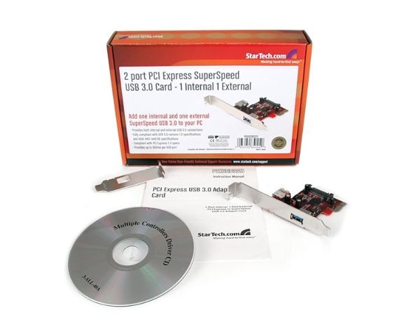 Add one internal and one external SuperSpeed USB 3.0 to your PC. The PEXUSB3S11 PCI Express USB 3.0 Card lets you add one internal, and one external USB 3.0 port to your PC through a PCI Express slot.