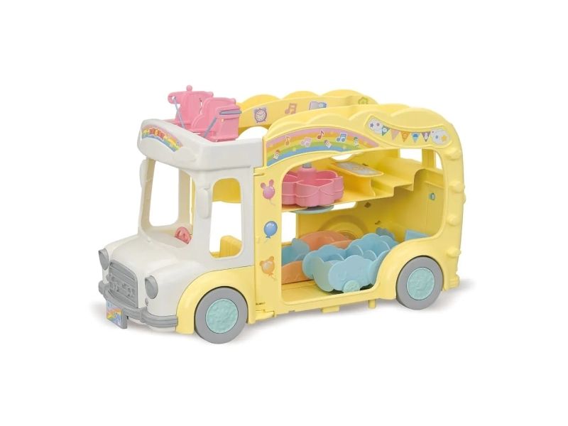 Børnehavens Regnbue Bus er en triple-decker bus med plads til 28 babyer og folde ud til en legepark med flere funktioner. Sæderne bliver til en karusell, gynge, rutsjebane, vippe og barnevogn. Alle babyer kan sidde i karusellen og barnevognen. Gyngens reb kan bruges som sikkerhedsseler på bussen. Velegnet til alderen 3+.