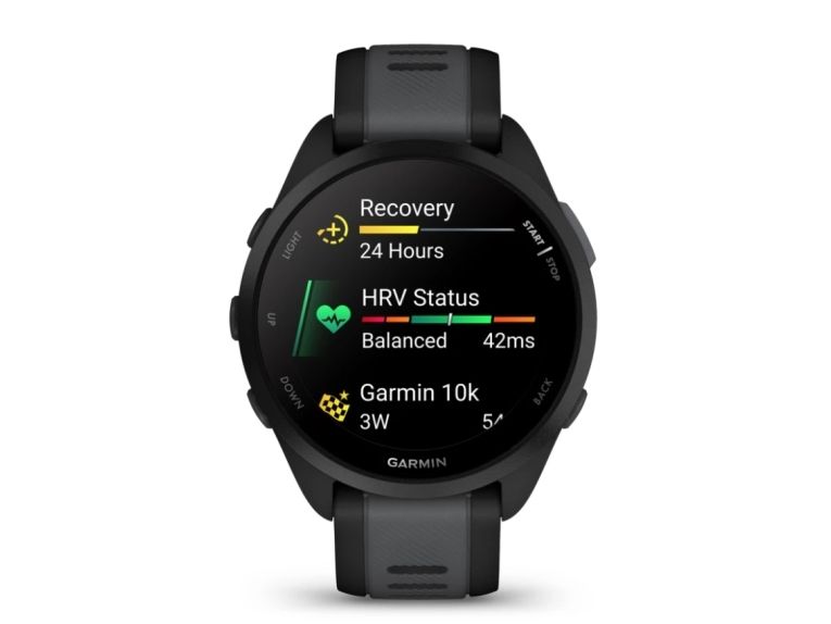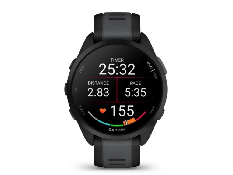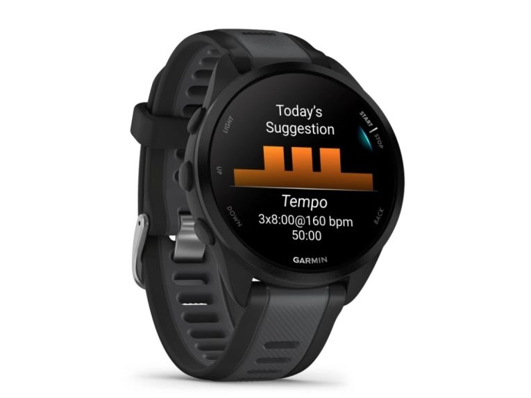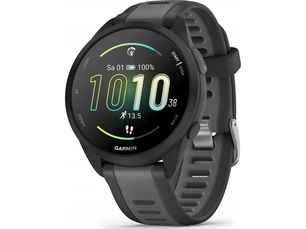 Garmin Forerunner 165 - Svart - sportsur med bånd - silikon - skifergrå - håndleddstørrelse: 126-203 mm - display 1.2" - 4 GB - Bluetooth, ANT+ - 39 g