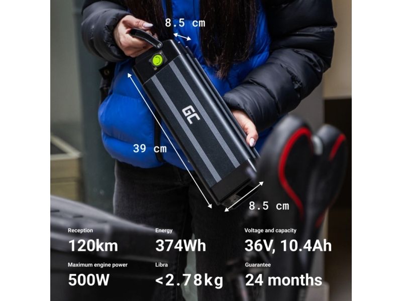 GC Silverfish batteri til elsykkel Ebike med lader 36V 10,4Ah 374Wh XLR 3 pin inkludert for Zündapp. polsk produksjon.
