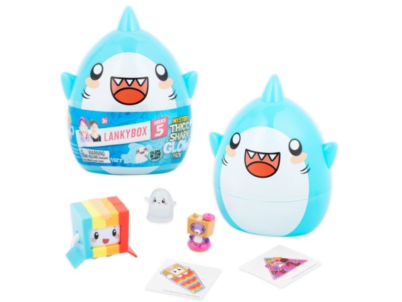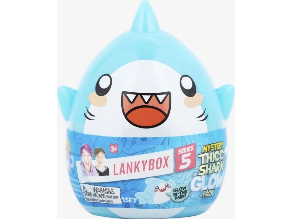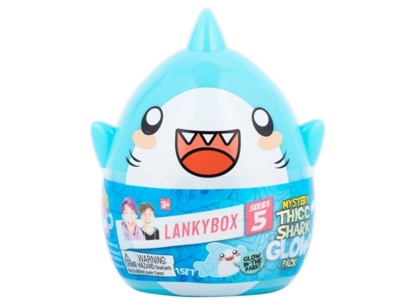 LankyBox, den mest sete YouTube-gaming-duo i verden, består af stjernerne Justin og Adam sammen med deres hold af animerede karakterer, herunder Boxy, Foxy og Rocky. De skaber videoer med høj energi, der får folk til at grine højt, med udfordringer, gaming og korte film. For LankyBox-fans, der ikke kan få nok af den vildt populære YouTube-kanal, er den helt nye Thicc Shark Glow Pack her! Sættet er fyldt med nye fantastiske samlerobjekter, hvilket gør det til den ultimative oplevelse med masser af unboxing-overraskelser. Sættet indeholder en figur, mikro-figurer og klistermærker! Selve kassen lyser op i mørket! Alt indholdet fanger den høje energi og kreative karisma fra LankyBox-videoerne. Denne Thicc Shark Glow Pack er et officielt licenseret LankyBox-produkt og vil helt sikkert være et stort hit med drenge og piger over hele verden.