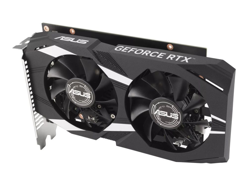 The ASUS Dual GeForce RTX 3050 6GB graphics card is designed to enhance your gaming and creative work with its powerful NVIDIA GeForce RTX 3050 graphics processor and advanced cooling technology. With 6 GB of GDDR6 SDRAM and a 96-bit memory interface, it delivers fast and efficient performance for today's demanding applications. This card supports up to 3 monitors, allowing for an immersive multi-display setup, and is compatible with DirectX 12 Ultimate and OpenGL 4.6 for advanced gaming graphics and performance. The inclusion of NVIDIA's Ampere GPU technology, including features like 2nd gen Ray Tracing Cores, 3rd gen Tensor Cores, and NVIDIA DLSS, provides realistic graphics and AI-enhanced gaming experiences. Additionally, technologies such as NVIDIA G-Sync, Reflex, and ShadowPlay work together to offer smooth, responsive gameplay and the ability to capture your best gaming moments with ease. Whether you're gaming, creating, or multitasking, the ASUS Dual GeForce RTX 3050 6GB is engineered to deliver exceptional performance and reliability.