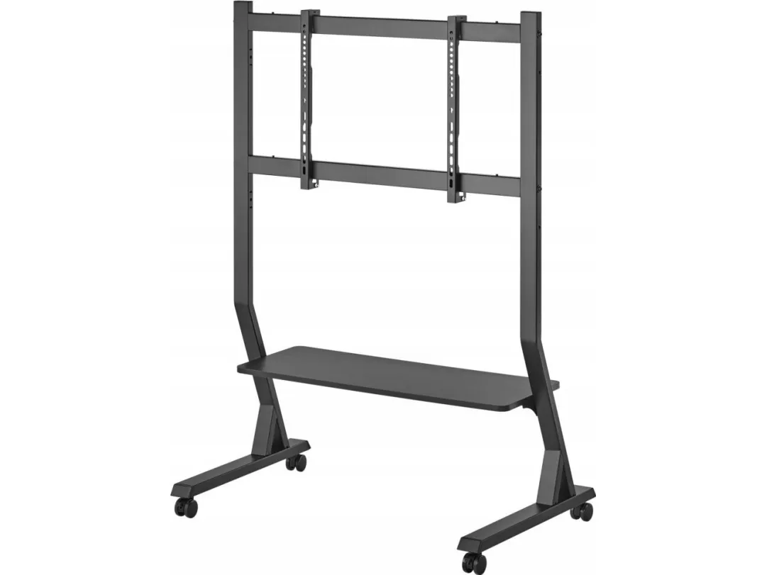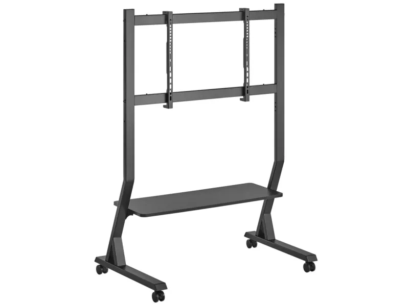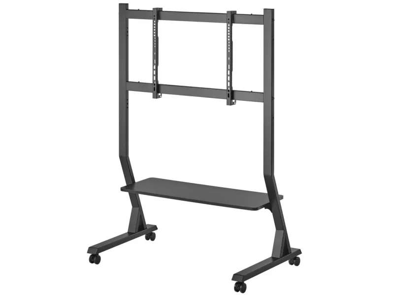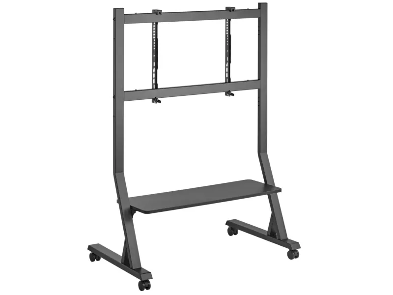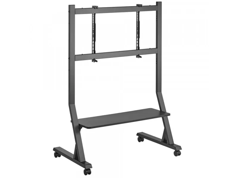 Techly Floor Stand with Shelf for 45-90" LCD/LED/Plasma TV. Maximum weight capacity: 60 kg, Minimum screen size: 114.3 cm (45"), Maximum screen size: 2.29 m (90"), Minimum VESA mount: 75 x 75 mm, Maximum VESA mount: 800 x 400 mm. Height adjustment range: 1026 - 1126 mm. Product colour: Black