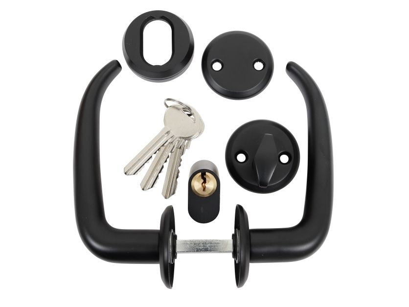 HOME It® dørgrebssæt til hoveddør med 3 nøgler matsort